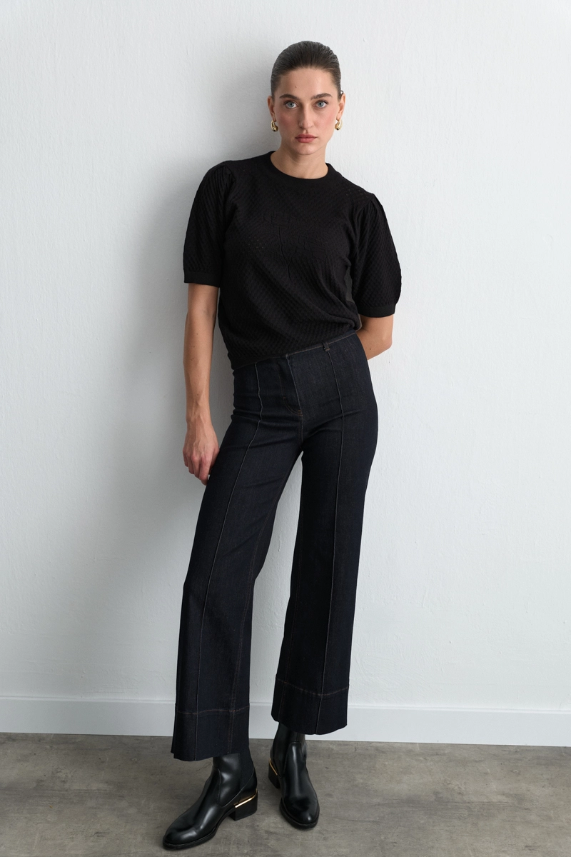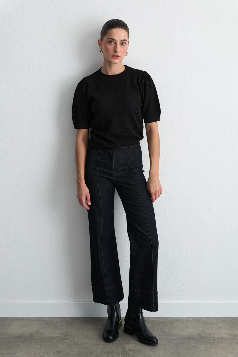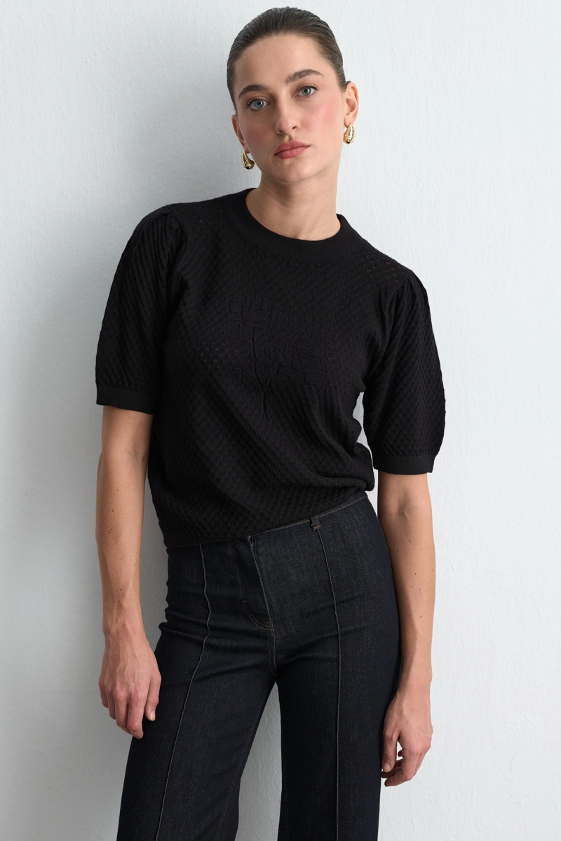 The rose patterns offer a feminine and elegant touch. The open-knit texture adds a light and chic appearance. Its black tone is classic and matches any combination. The viscose structure offers all-day comfort. Enhances both everyday and special outfits with stylish flair.