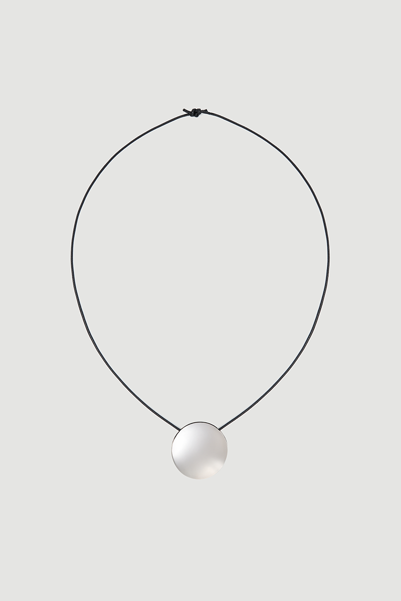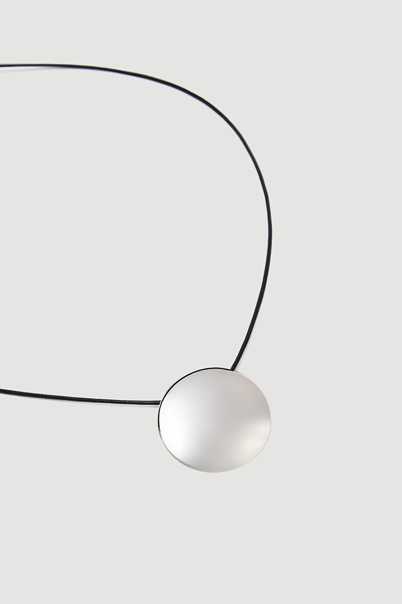 Its minimalist design emphasizes understated elegance. The silver-toned metal detail adds a modern touch. Thanks to its cord structure, it offers lightweight and comfortable wear. It stands out as an elegant complement to everyday outfits.