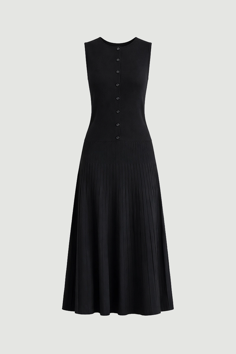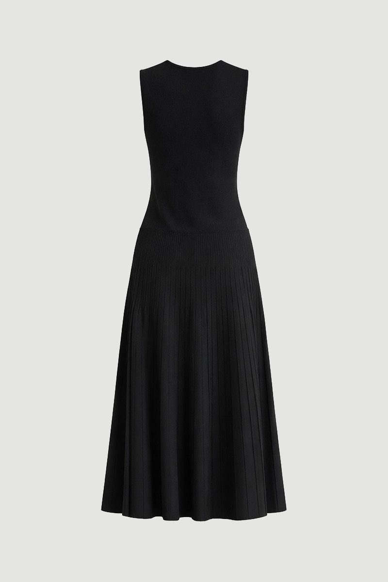 The round neckline offers a simple and classic appearance. Pleated details add movement and depth. Black tones create a sophisticated presence in any setting. Knit texture ensures comfortable wear. Suitable for daily or special occasion outfits. Elegant cuts highlight the silhouette.