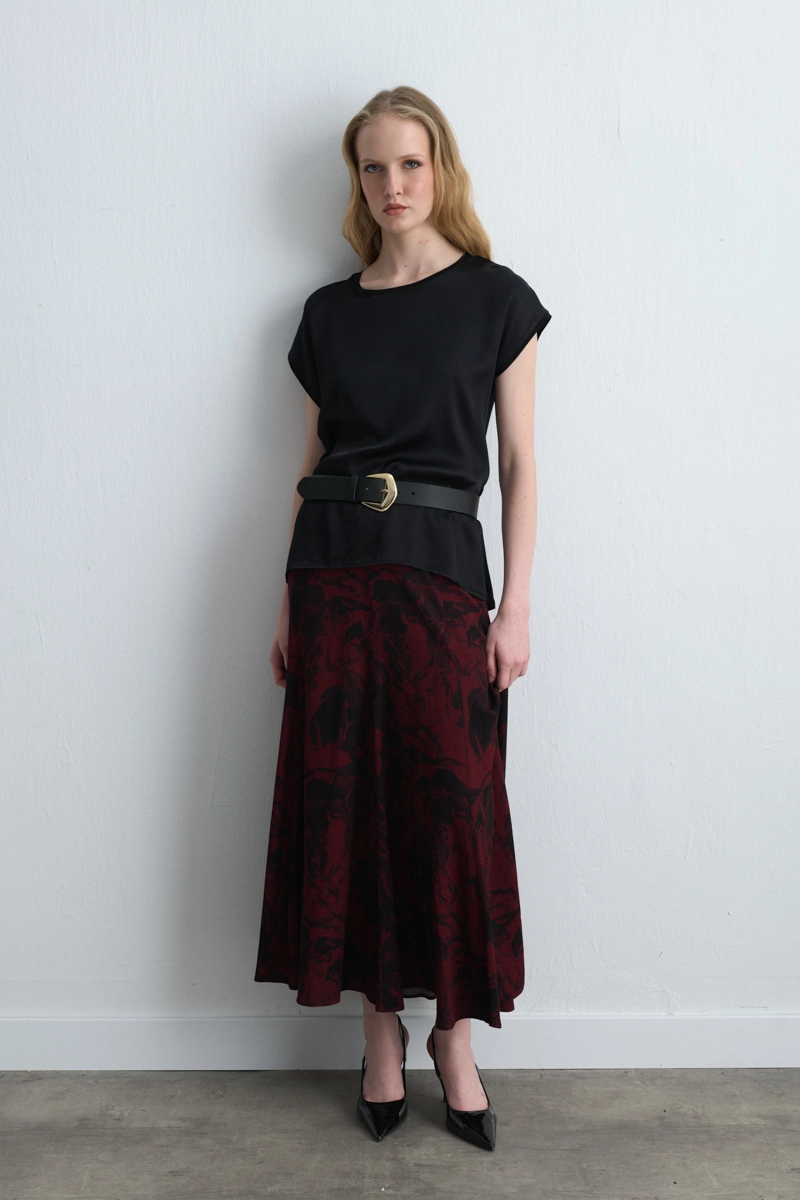 This viscose T-shirt with a round neckline and satin front detail combines casual elegance with comfort. Its refined black tone makes it suitable for both sporty and classic outfits. With its light and soft texture, it ensures all-day comfort. A timeless wardrobe essential that fits perfectly into any setting from office style to weekend gatherings.