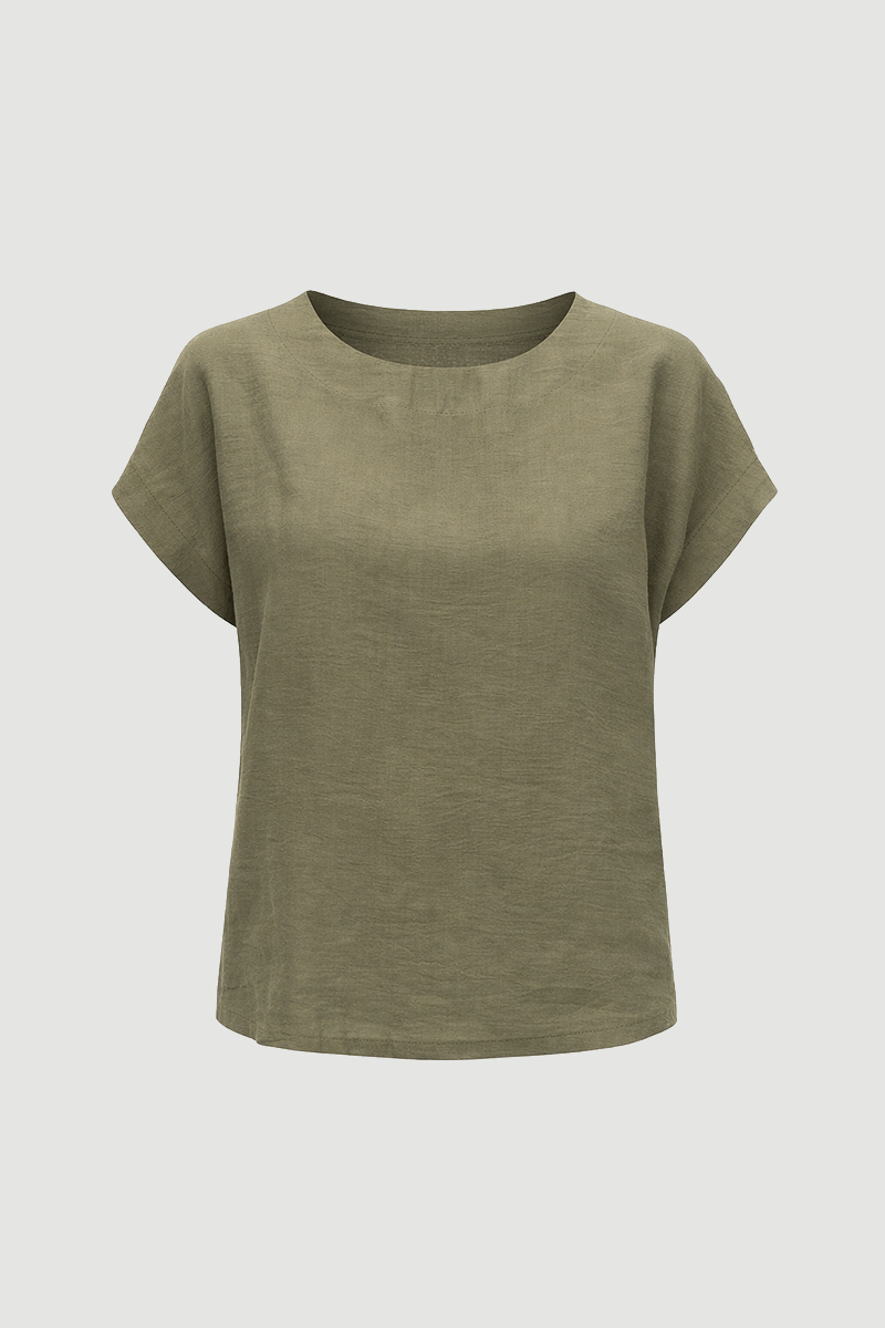 Round-neck design provides a simple and modern look. Tencel fabric ensures light and flowing comfort. All-day wear pairs easily with different outfits. Ideal for daily wear, creating a relaxed and chic alternative. Natural tone adds a modern touch to outfits.