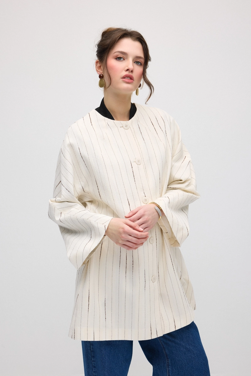 Glitter stripe details add an elegant and dynamic touch. Muslin fabric ensures lightweight and breathable wear. Relaxed cut provides all-day comfort. Suitable for daily wear as well as vacation outfits. Neutral and elegant appearance completes your style.