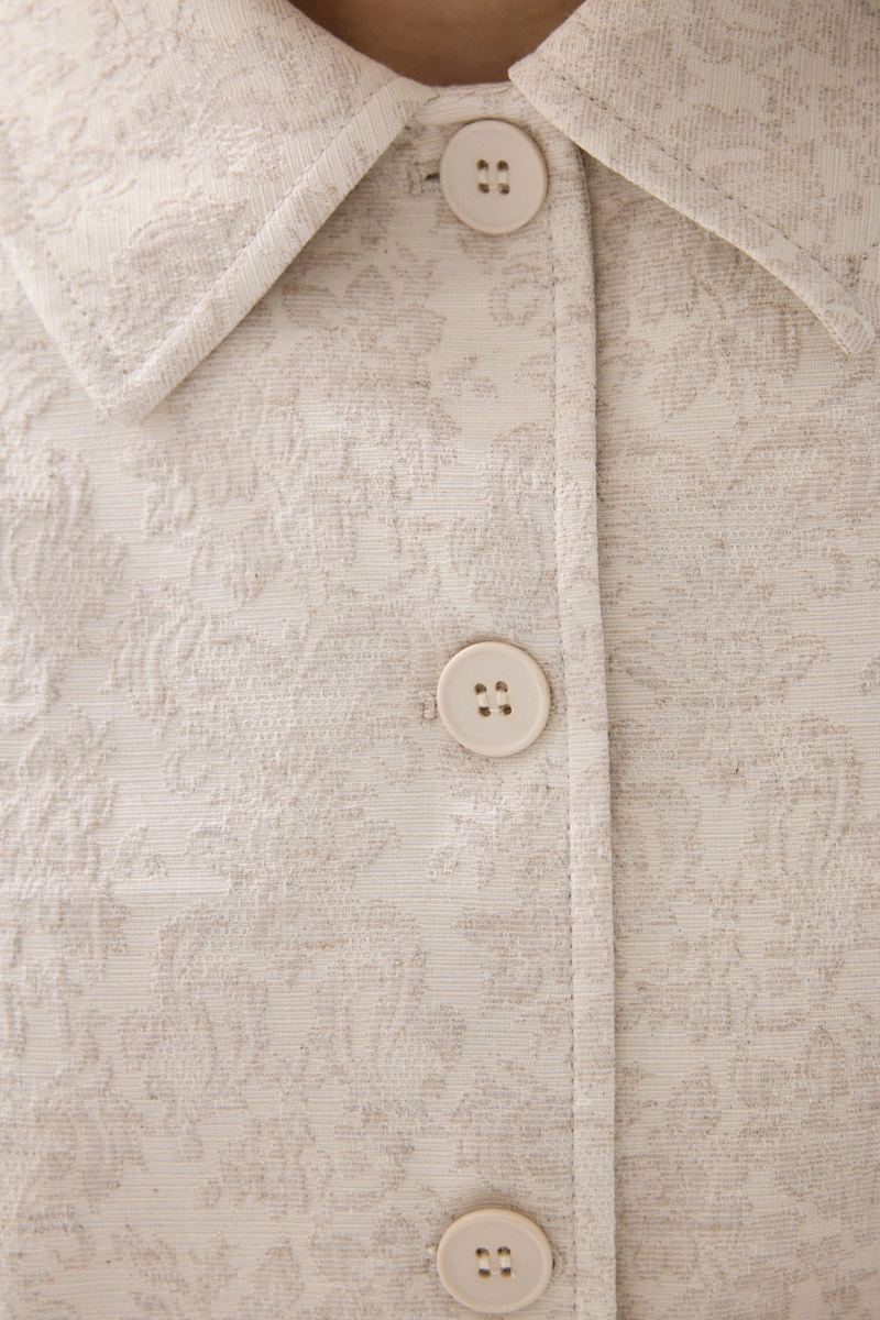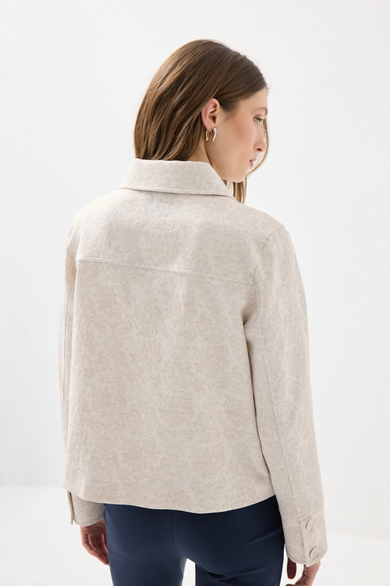 Its jacquard-patterned texture adds a rich look to the design. Its unlined structure offers a lightweight and comfortable wear. The shirt collar detail creates a modern style. It is an ideal piece for everyday elegance.