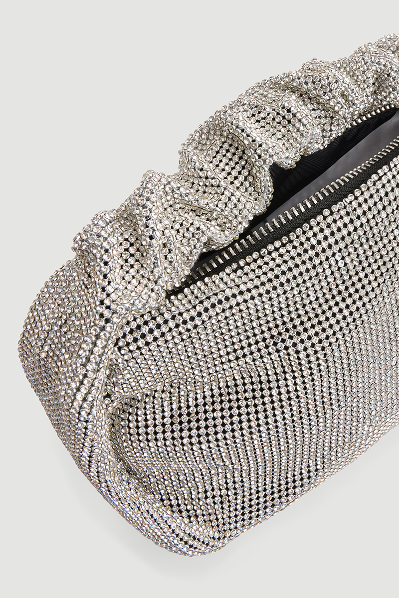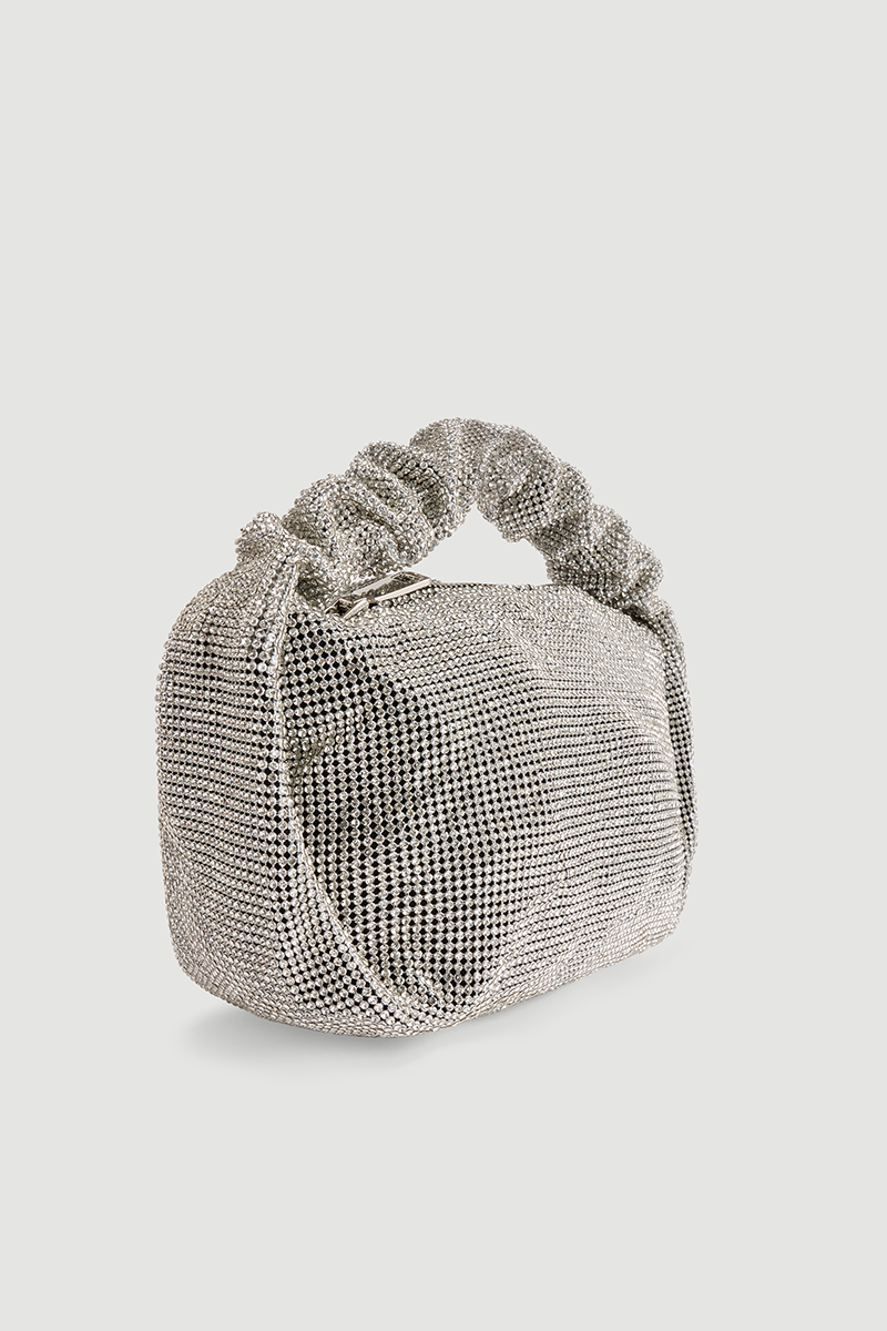 Shimmering stone details add elegance to special nights. Silver color creates a modern and refined look. Short handle design suitable for hand carrying. Perfect for parties and celebrations.