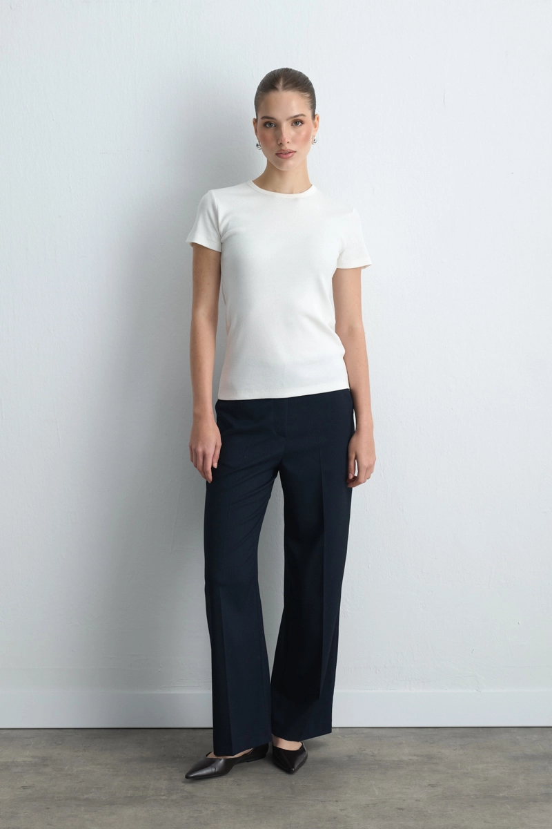 Its Soft Cotton Texture Ensures Comfort Throughout The Day. The Ecru Tone Provides A Simple And Natural Elegance. The Short-Sleeved Form Offers Comfort During Summer. Can Be Easily Used In Layered Outfits.