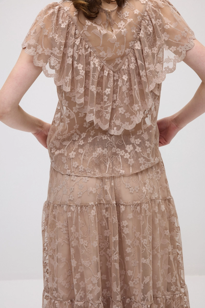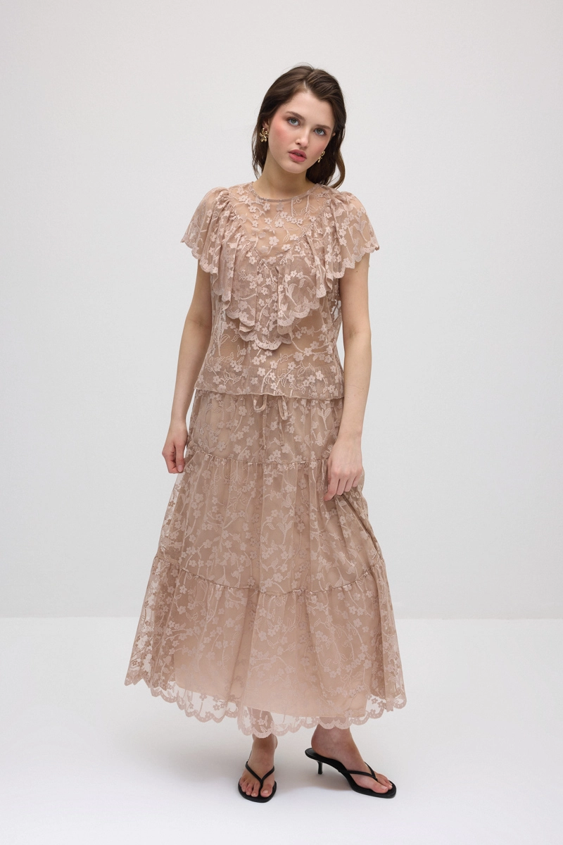 Lace details add an elegant and feminine touch to the design. Lightweight fabric ensures all-day comfort. The modern cut pairs easily with different outfits. Suitable for daily style and chic combinations. Its timeless design makes it a special piece completing your look.