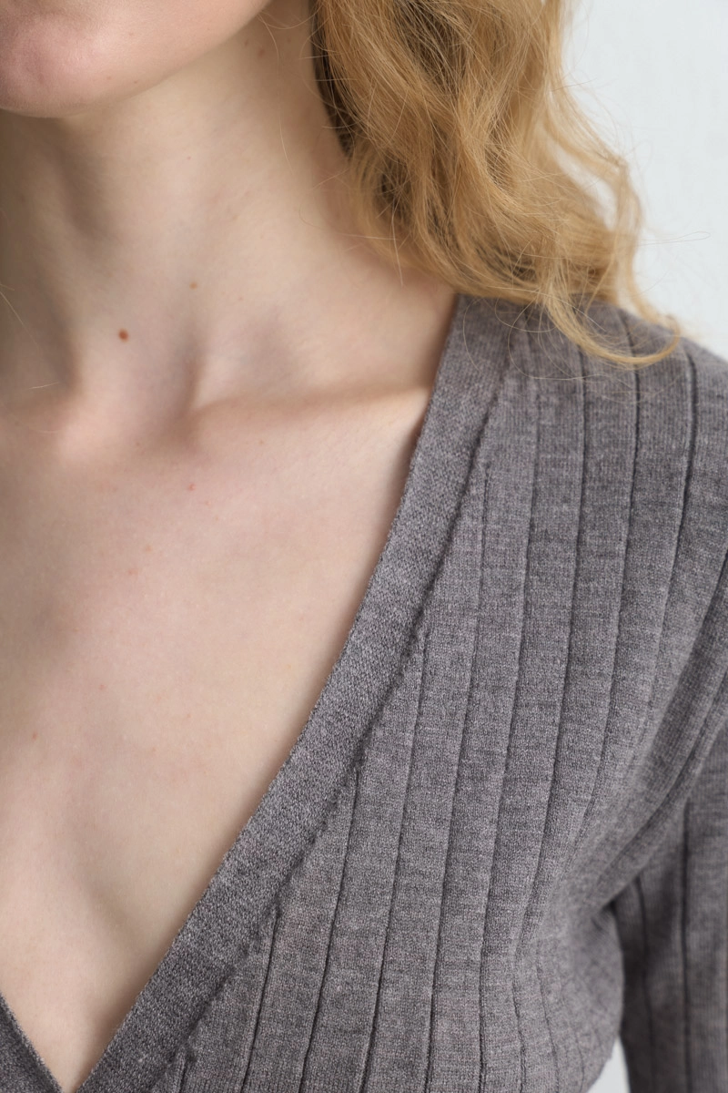 The Neutral Gray Tone Easily Matches With Any Color. The Ribbed Detail Adds A Sporty Touch. Its Short-Sleeved Design Provides Practicality During Seasonal Transitions. An Ideal Option For Everyday Elegance.