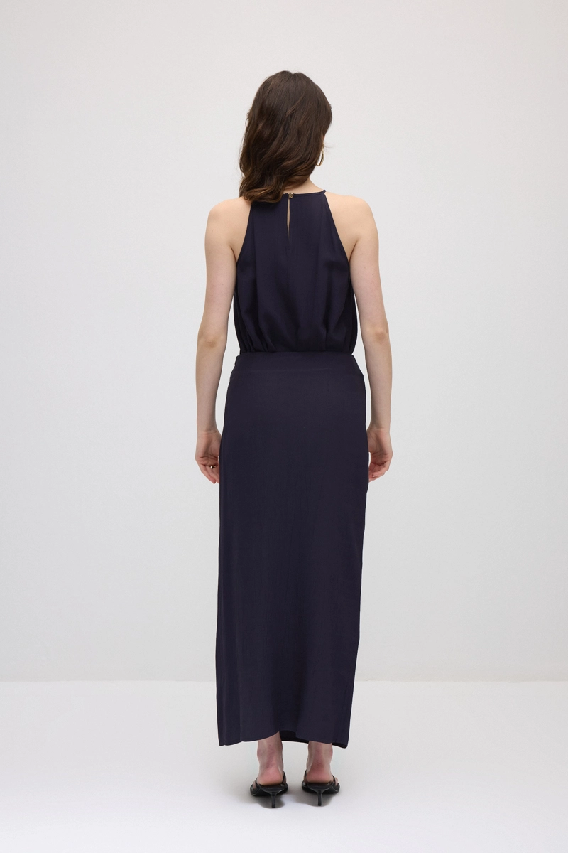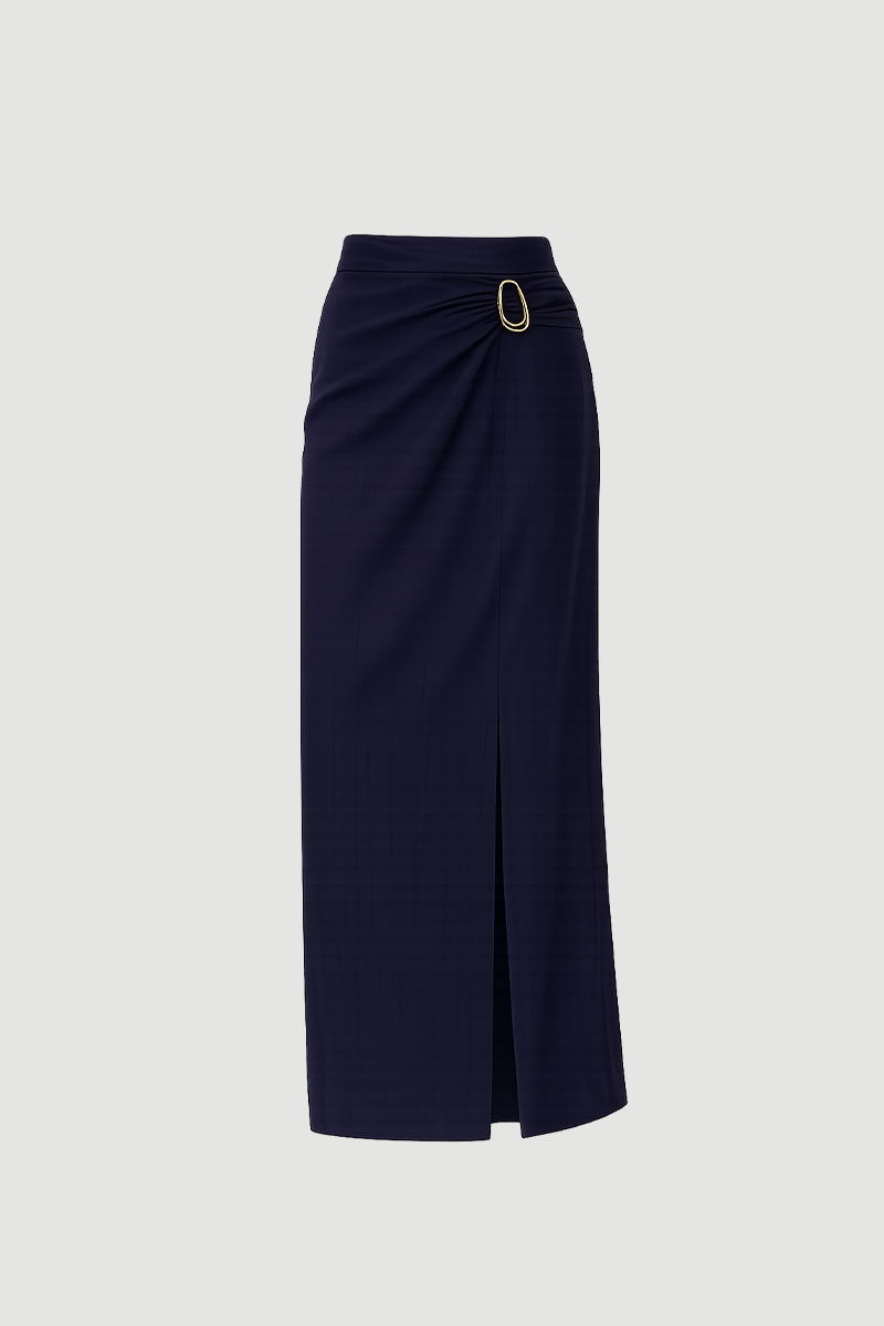 The side buckle detail and long slit design provide a modern and eye-catching look. The flowing shape creates an elegant and feminine silhouette. Suitable for daily style as well as chic combinations. Pairs easily with different tops. Its timeless design makes it a special wardrobe piece.