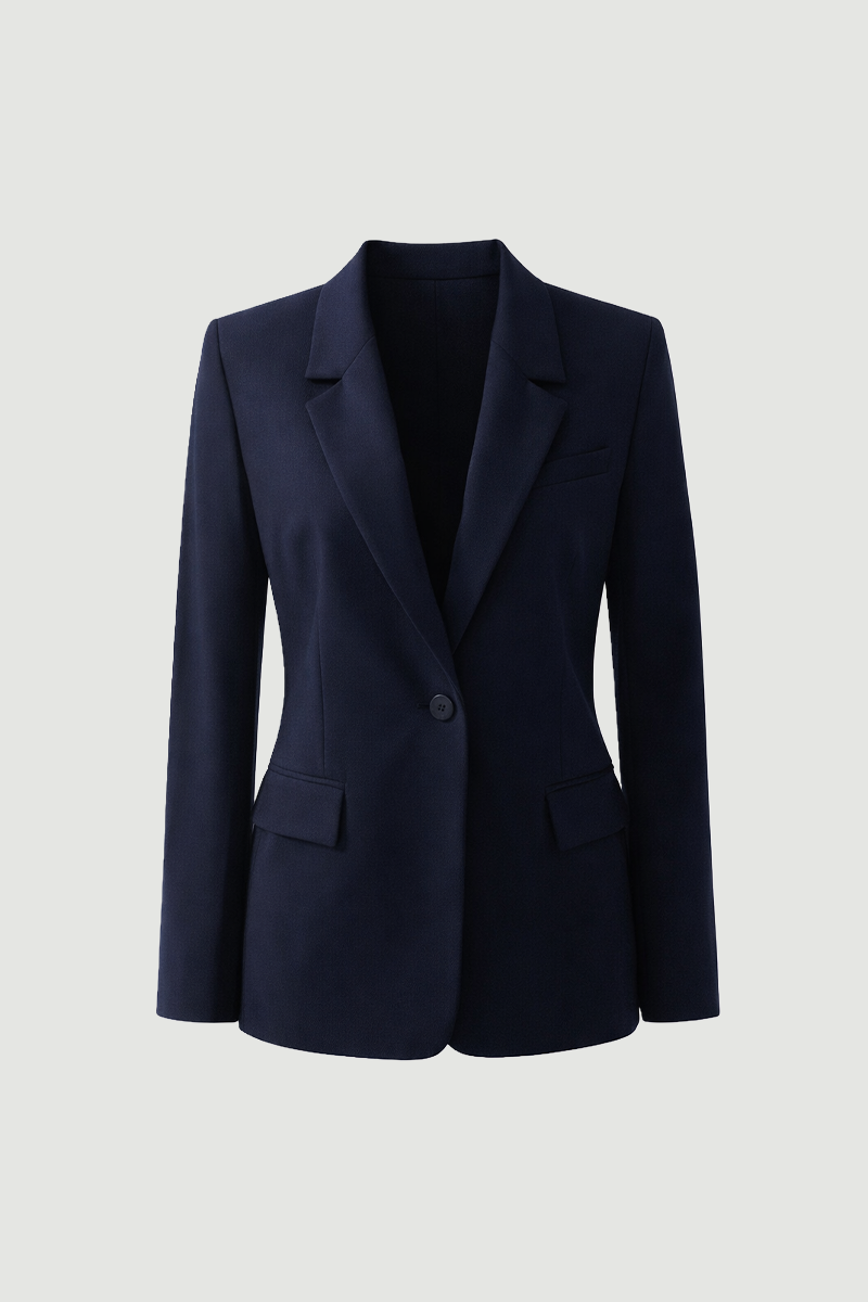 It offers a stylish and strong look with its timeless cut. Its single-button design adds a modern touch. The navy tone pairs perfectly with classic combinations. It can be easily preferred for both daily and business style.