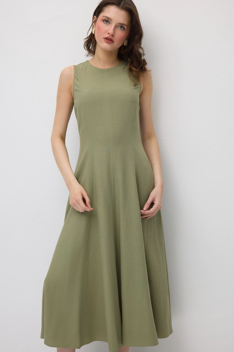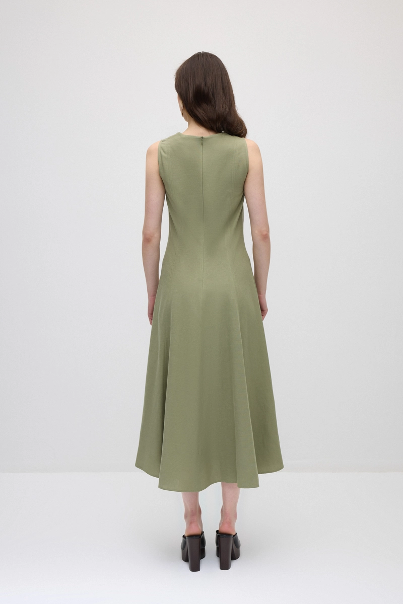 The cotton-linen blend fabric provides a lightweight and breathable structure. Sleeveless and long cut ensures a fresh fit in summer. The relaxed form creates a modern and natural silhouette. Suitable for daily style as well as vacation outfits. The natural tone pairs easily with different accessories.