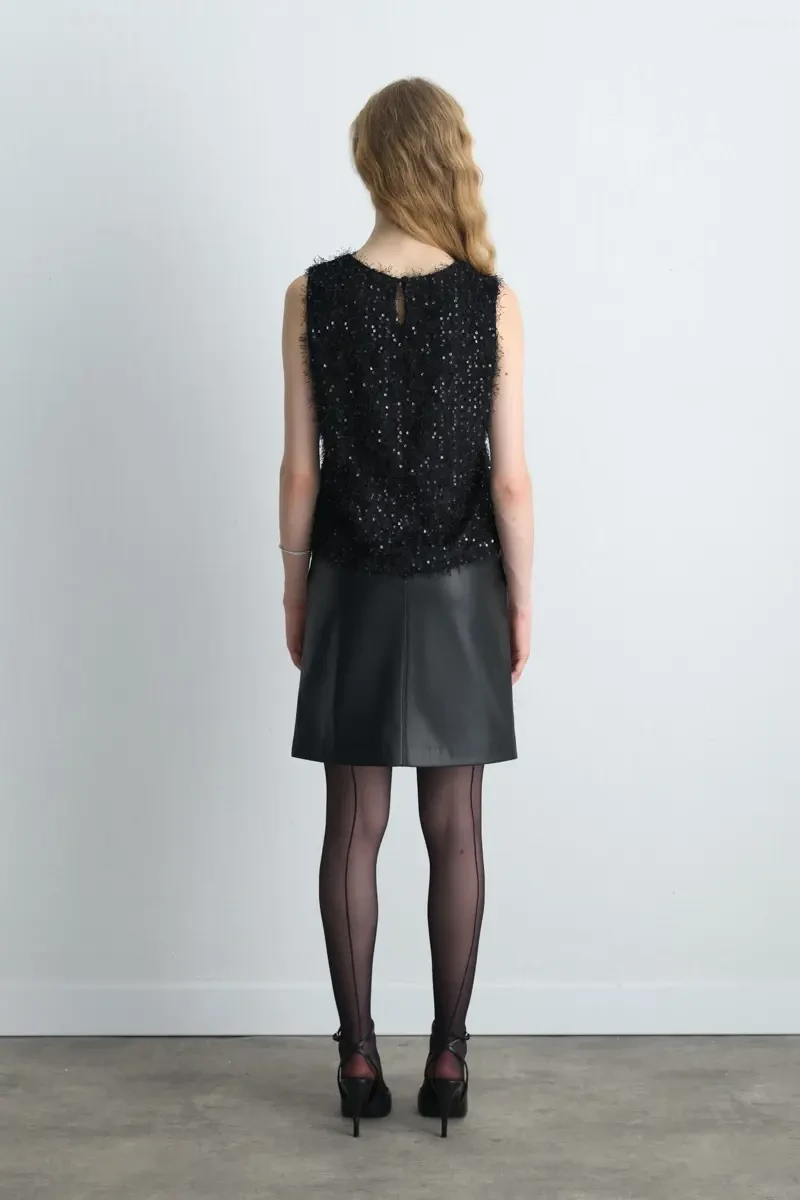 Its Sparkling Sequins Stand Out. The Jersey Fabric Provides Comfort With Stretch And Highlights Style. The Black Tone Creates An Elegant Balance. An Eye-Catching Option For Parties And Special Nights.