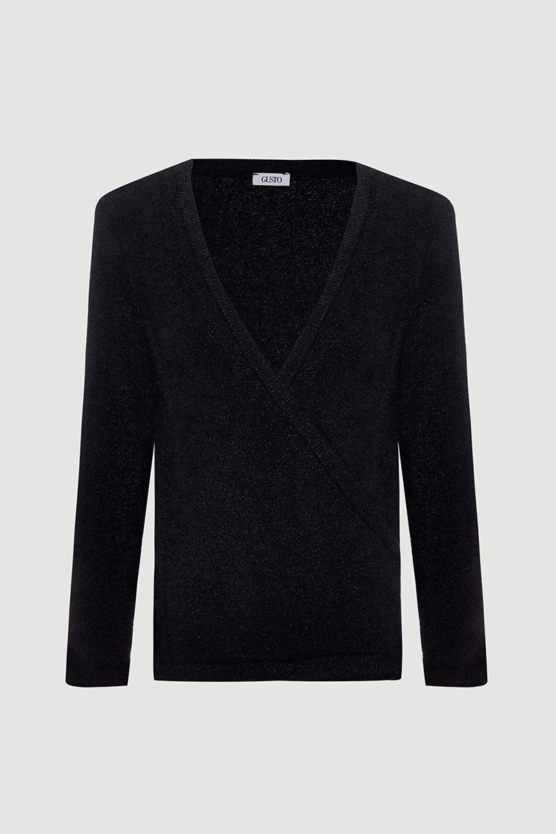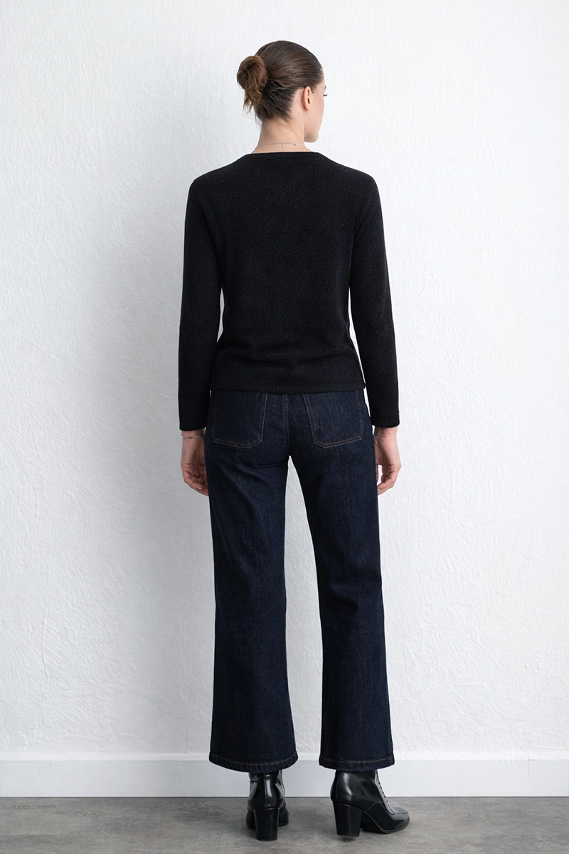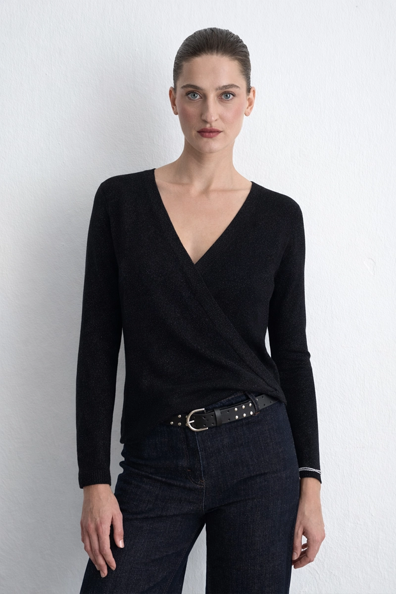 Its soft texture provides comfort all day long. Its sequined surface adds an elegant sparkle to simple chic. The envelope cut creates a feminine silhouette. The black tone complements any outfit. It easily adapts to both daytime and evening styles. Its elegant look makes it the focal point of your style.