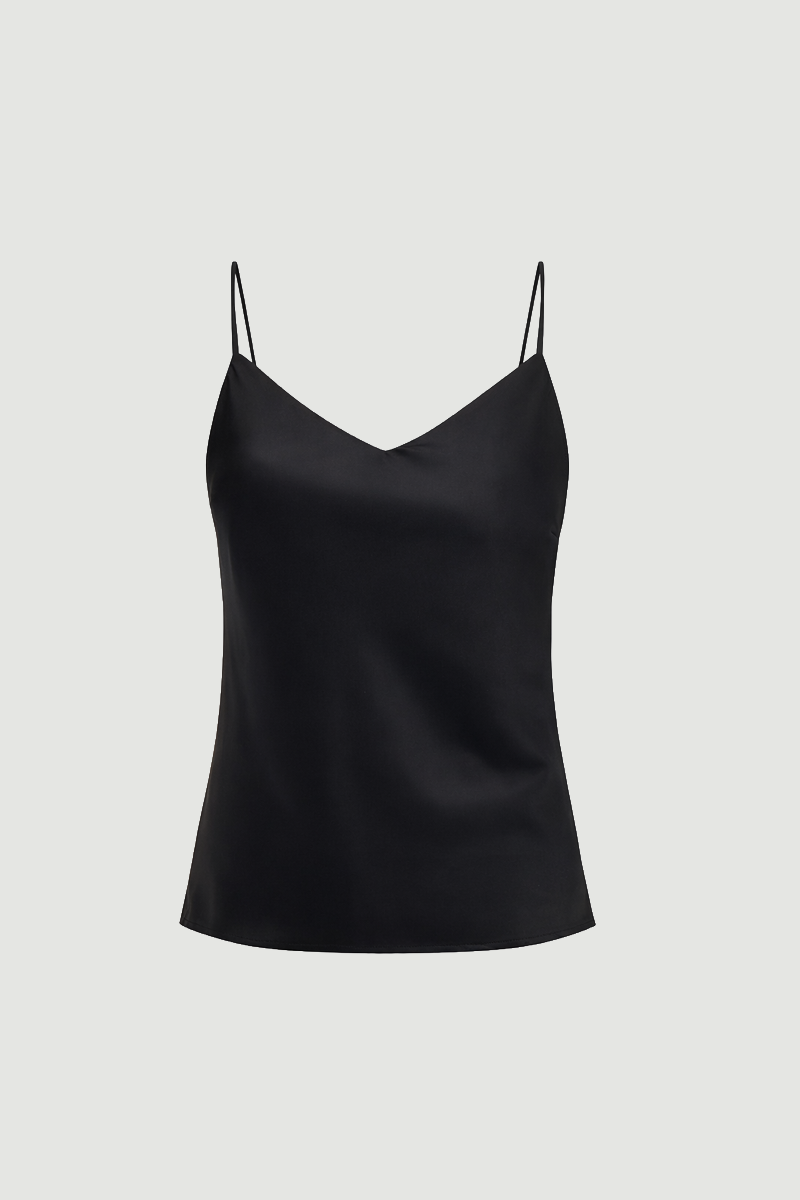 Spaghetti Strap Satin Tank - Black
