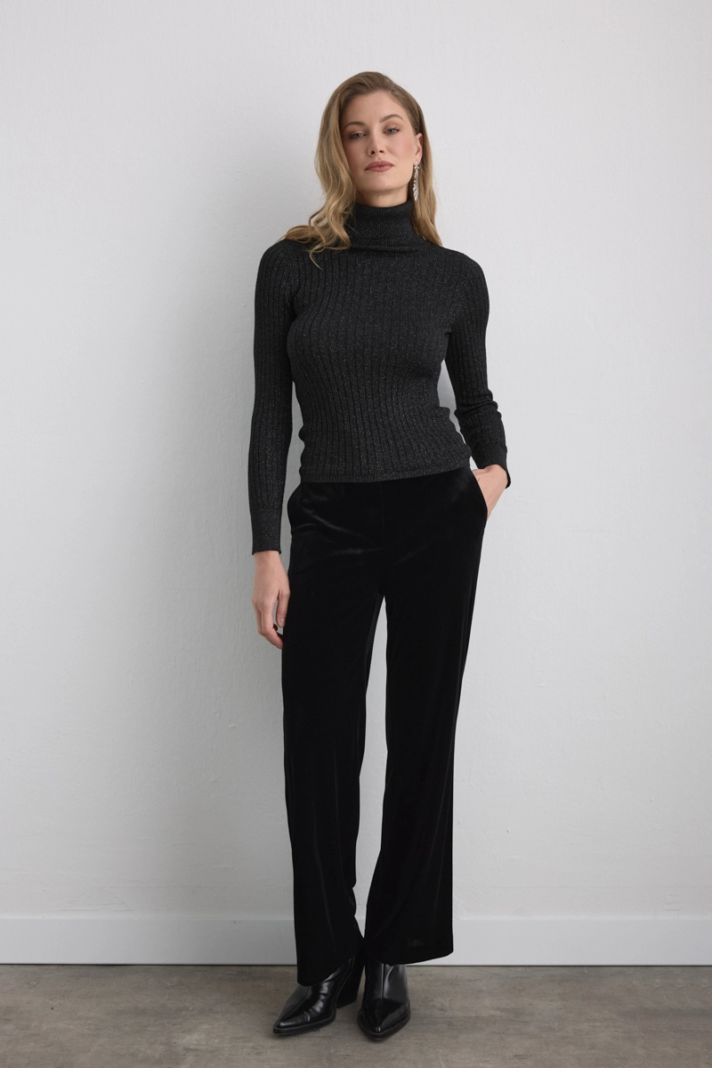 Shimmering details elevate simple elegance to a sophisticated level. The turtleneck form creates a refined balance in winter outfits. The soft fabric ensures all-day comfort.