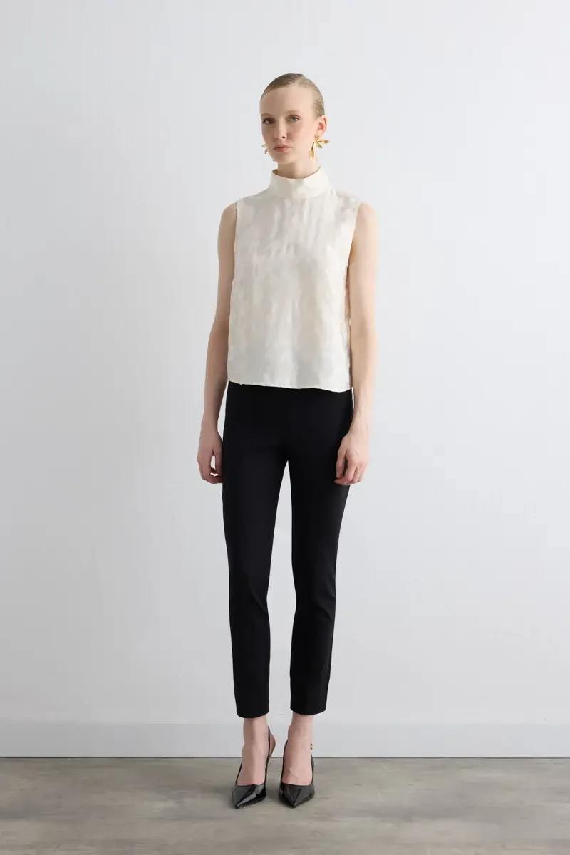 Its elegant texture provides a refined appearance. The high collar adds a modern touch. The ecru tone offers timeless elegance. Relaxed fit ensures comfortable wear. Easily complemented with minimal accessories for special occasions.