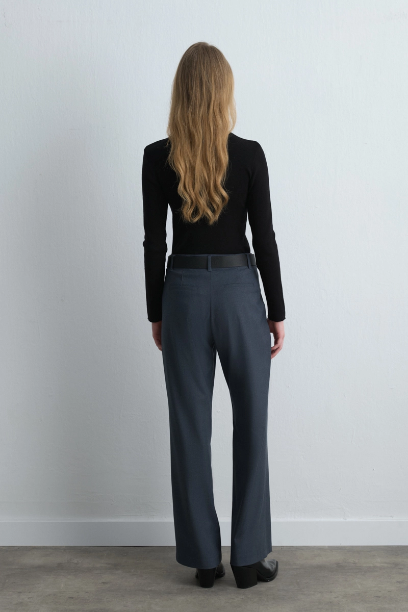 These straight-leg fabric pants, in navy, combine elegance and comfort, becoming essential for classic outfits. Offer a modern alternative for both work and daily wear. Can be styled simply with basic blouses or formally with chic jackets. A versatile piece that is a wardrobe essential.