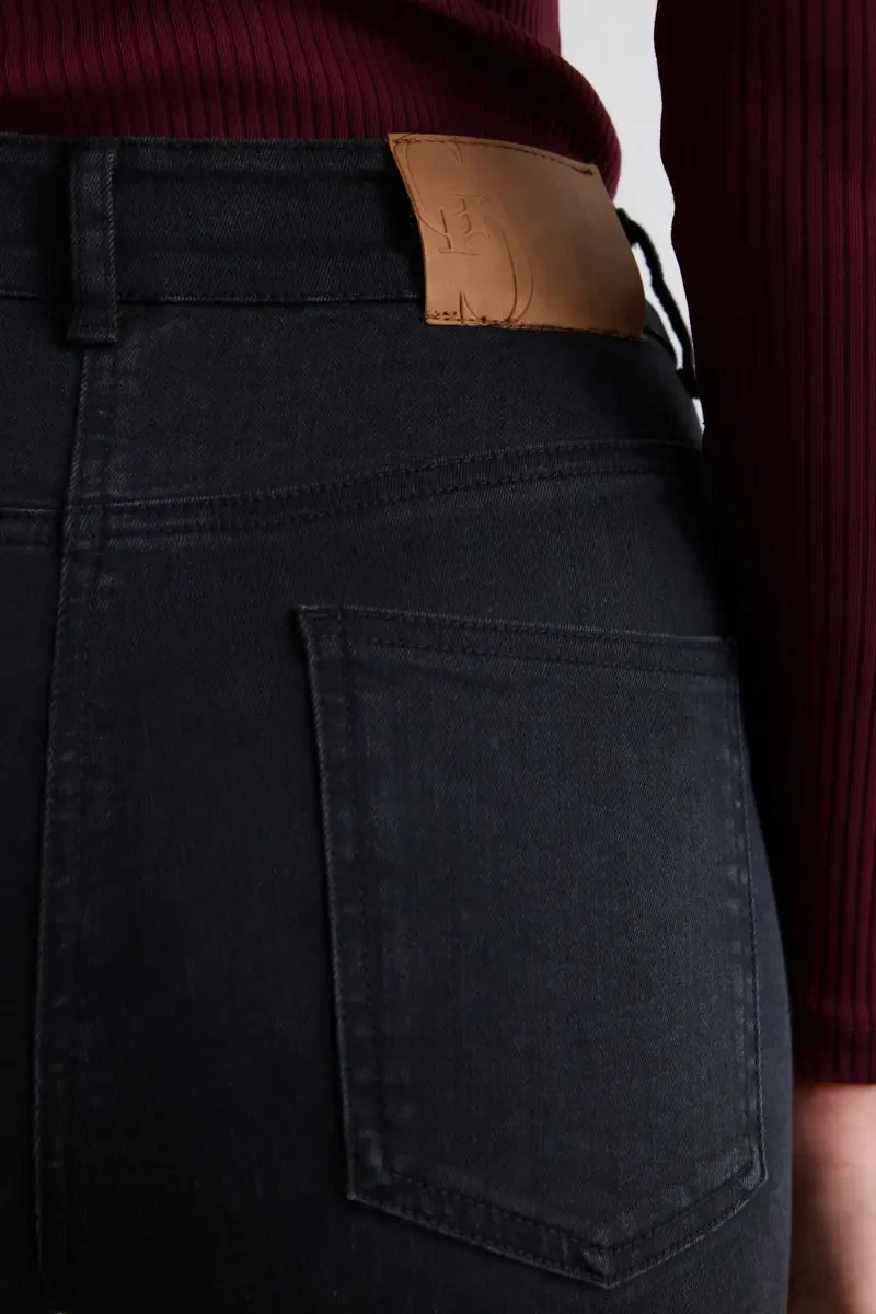 The wide-leg cut creates a modern silhouette. Its flexible structure ensures comfortable wear. The black tone allows for timeless combinations. Combines daily elegance with comfort. High heels add an elegant touch.