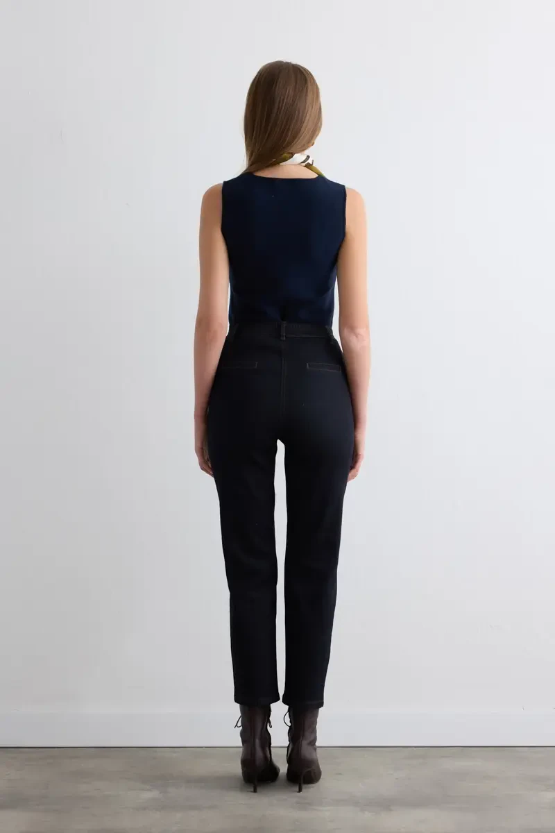 The high-waist form offers a modern appearance. Its relaxed fit ensures all-day comfort. The navy tone complements any color. Its durable structure allows long-term use. Easily adapts to both casual and stylish outfits.