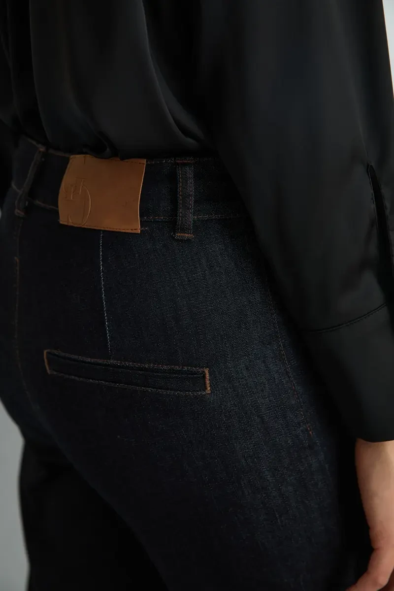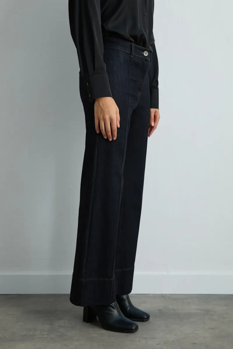 The wide-leg design creates a comfortable silhouette. The Tencel denim structure is soft and comfortable. The navy color makes it easy to style. Suitable for both casual and chic combinations. Minimal details offer a modern style.