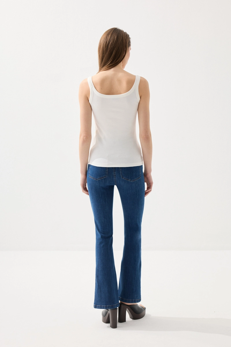 It offers all-day comfort with its soft cotton texture, while the thin strap detail provides an elegant look. Its breathable structure ensures a fresh feel, especially in warm weather. Thanks to its basic design, it easily matches with different outfits and becomes a wardrobe essential. Its flexible structure adapts to the body, allowing ease of movement. It has a wide range of use from daily wear to layered combinations.