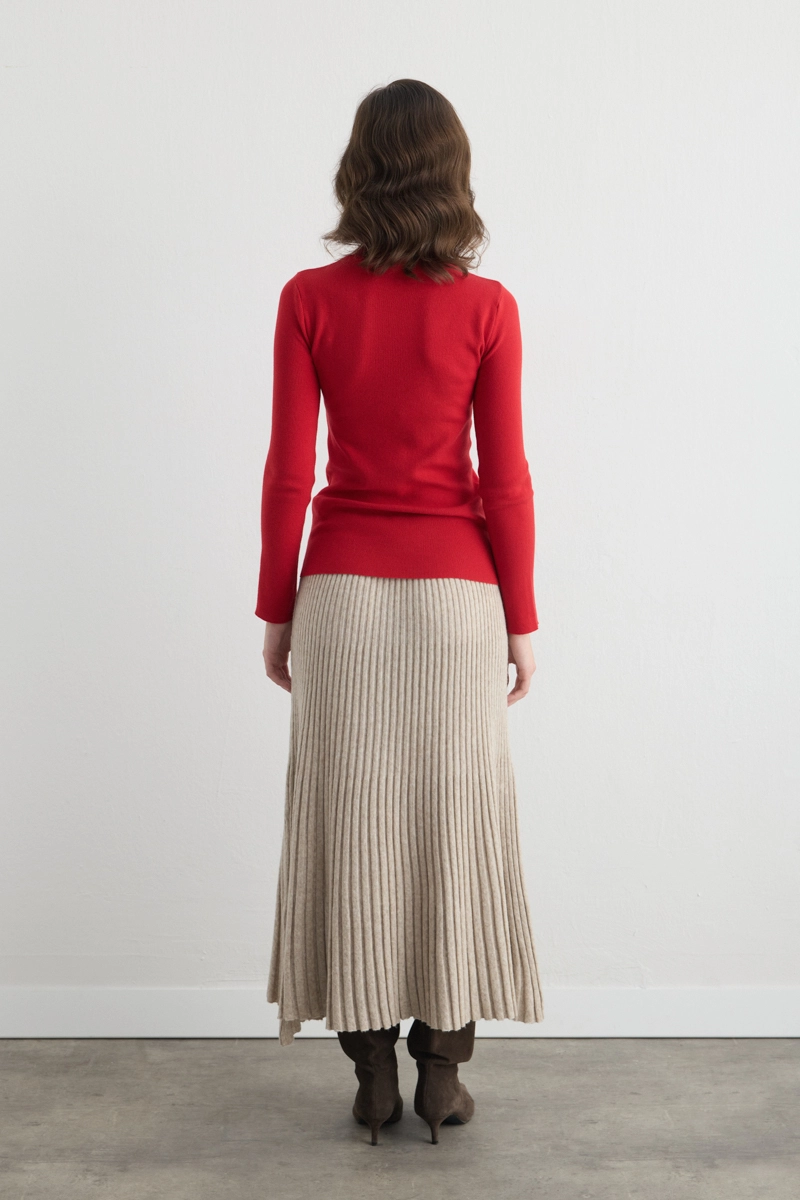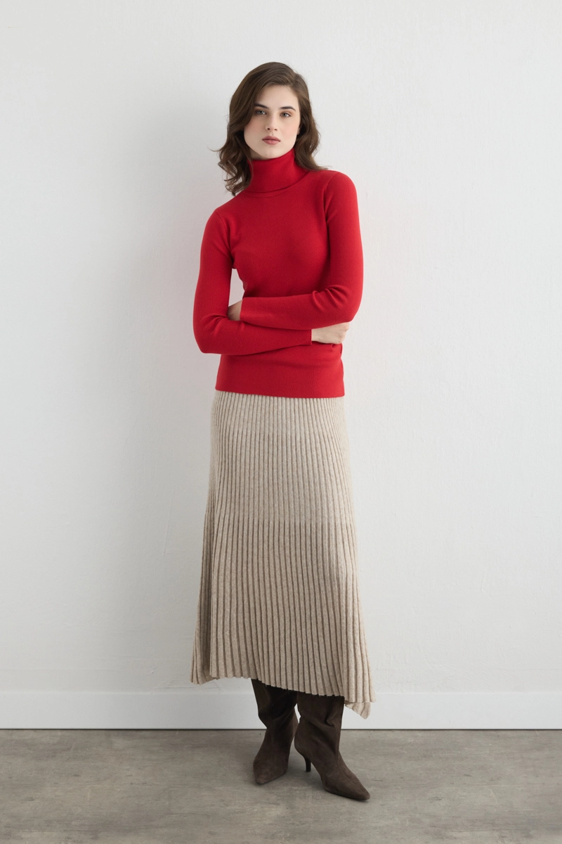 The turtleneck provides a warm and protective fit. The vibrant red tone creates an energetic and striking effect. The knit texture ensures comfort and ease of wear. Perfect for daily and office outfits with a modern stance. The simple design pairs easily with any piece. Minimal accessories enhance the elegance.