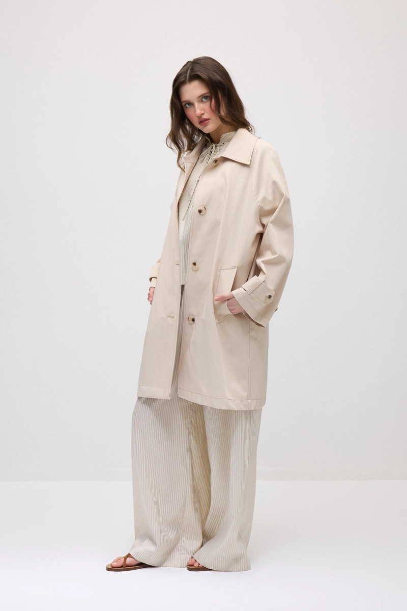 Lined-free design ensures lightweight and comfortable wear. Cotton fabric provides all-day comfort. Its timeless cut pairs easily with different outfits. A stylish piece for transitional seasons. Modern and simple appearance complements city style.