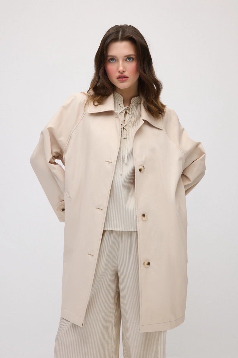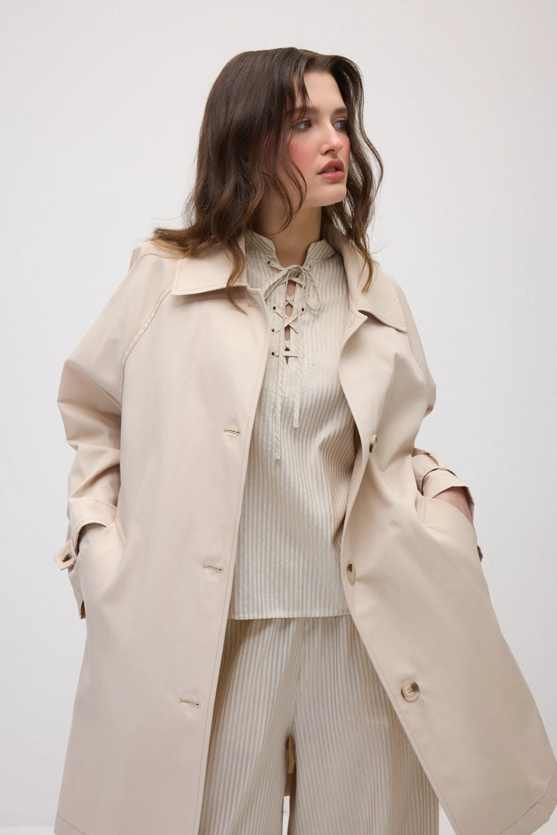 Unlined Cotton Trench Coat - Beige