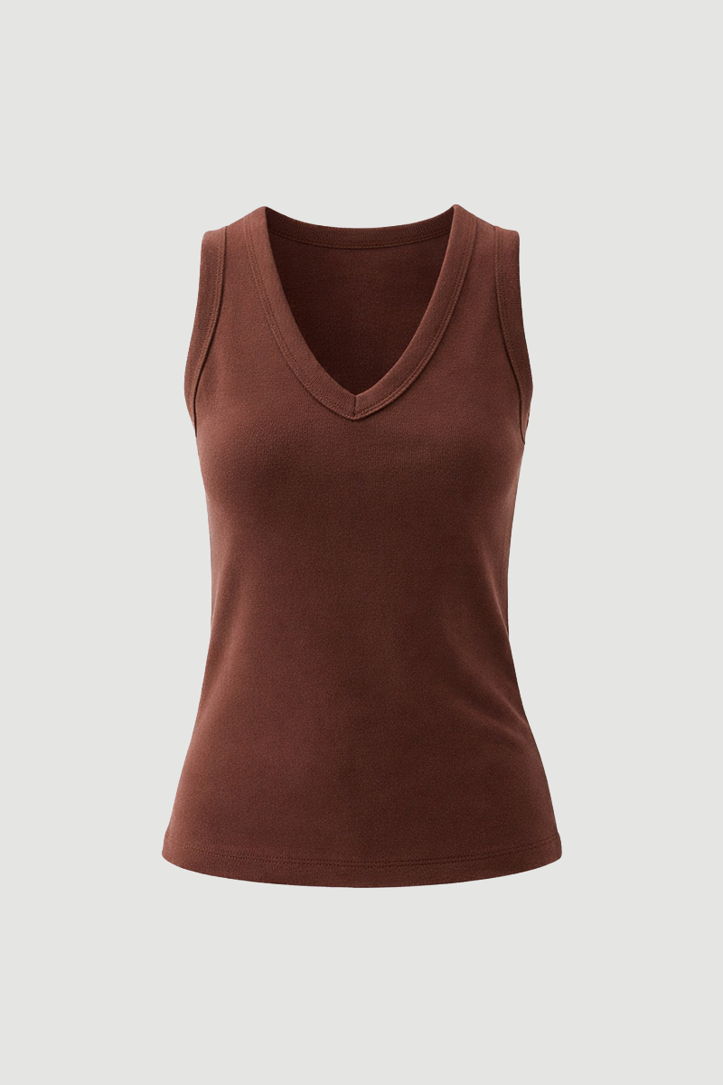 It offers all-day comfort with its cotton texture. The V-neck cut creates an elegant and simple look. The brown tone pairs well with natural and warm combinations. It is an ideal complement for everyday style.