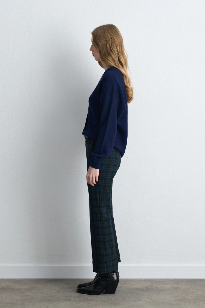 It offers warmth and softness with its wool-blend texture. Its navy tone creates a classic and elegant look. The V-neck design adds a simple yet striking touch. The buttoned form provides practical use. It adds value to wardrobes as a stylish piece for seasonal transitions.