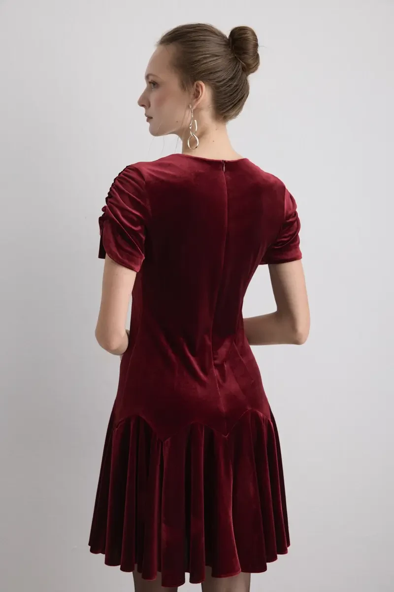 Velvet texture provides a luxurious and stylish feel. The V-neck adds an elegant silhouette. Burgundy tone is ideal for special occasions and event outfits.