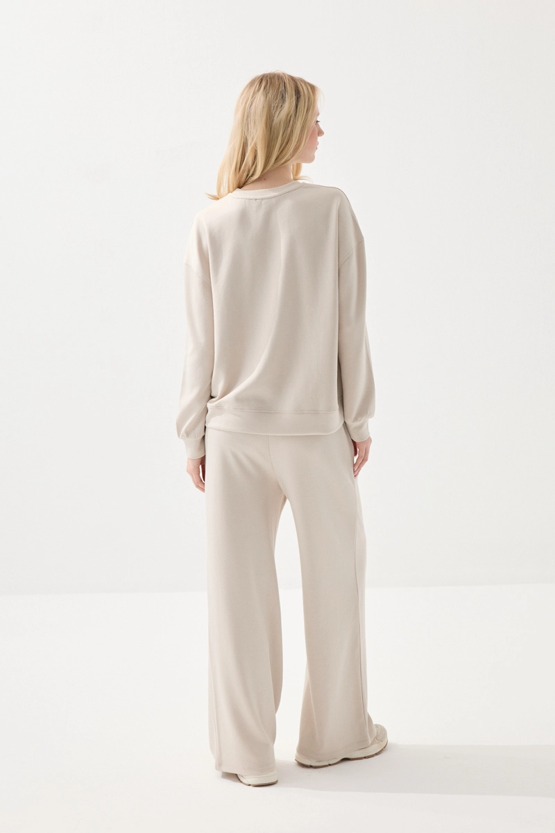 This sweatshirt, prioritizing comfort with its soft viscose texture, stands out with its simple and stylish design. Its breathable structure ensures all-day comfort. Ideal for daily wear, this piece completes your style with its modern cut. Its lightweight structure makes it suitable for transitional seasons. It can be easily paired with different outfits.