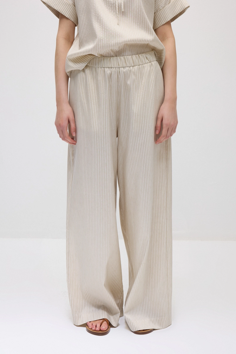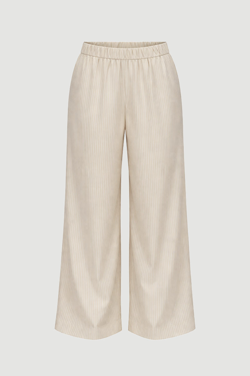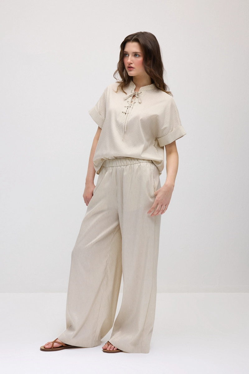 Wide-leg cut and elastic waist provide all-day comfort. Lyocell fabric creates a relaxed style with its light and flowing structure. Ensures a modern and simple look in daily outfits. Its timeless design pairs easily with different tops. The natural tone adds an elegant touch to outfits.