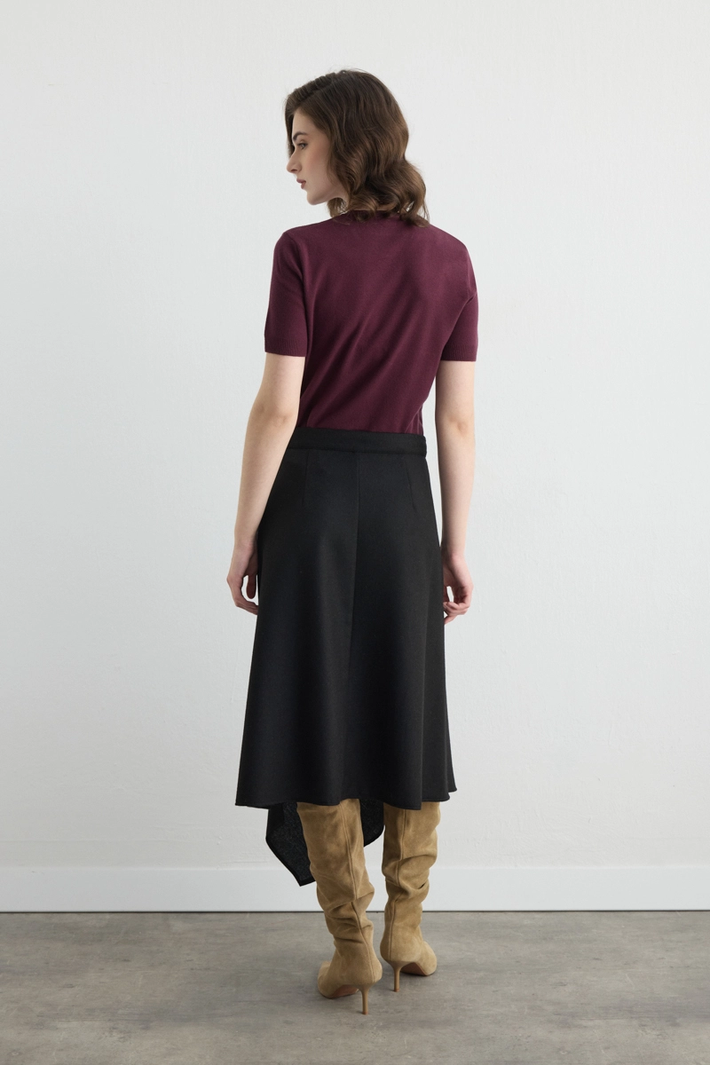 Wrap Cut Asymmetric Wool Blend Skirt Black