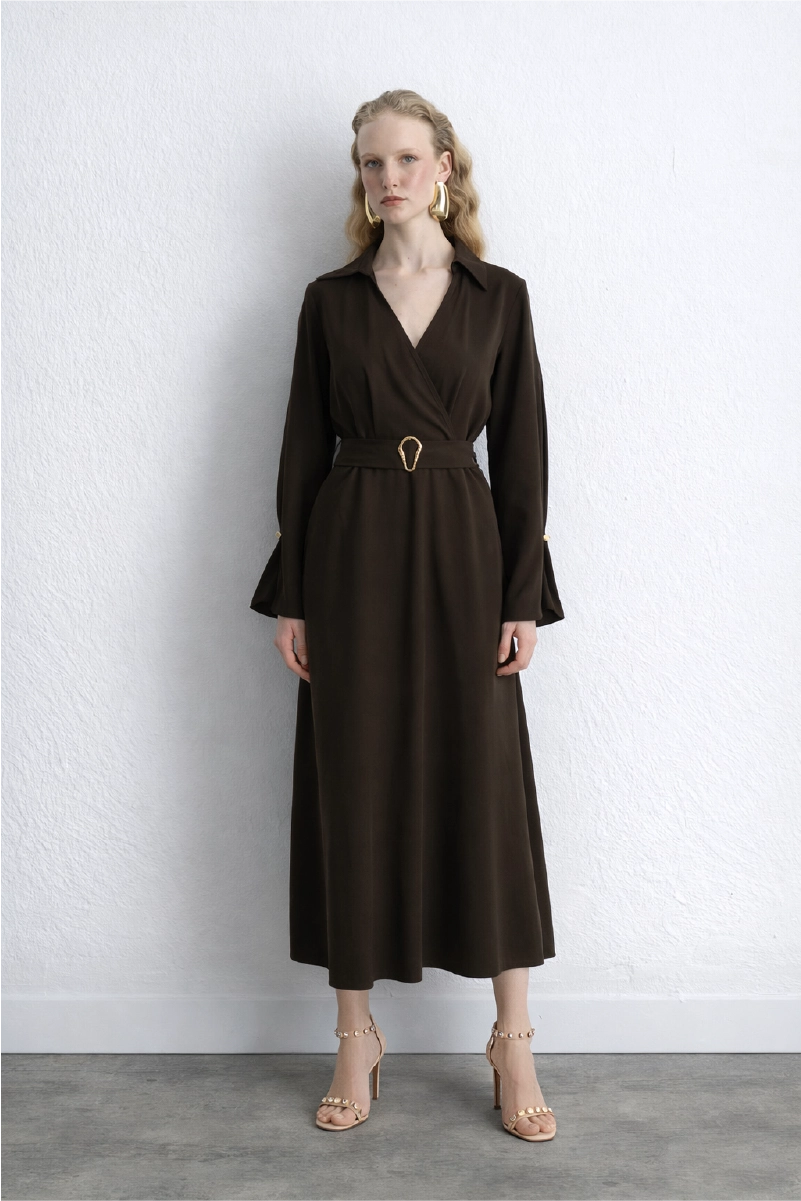 Wrap Long Lyocell Dress Brown