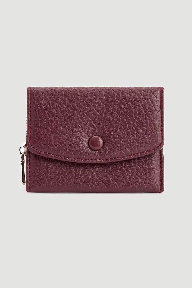 Enerjik mürdüm rengiyle öne çıkan mini cüzdan, fermuar detaylarıyla modern bir görünüm kazanır. Küçük boyutu çantada taşımayı kolaylaştırırken, fonksiyonel bölmeleri ile pratiklik sunar. Hem günlük hem de akşam kombinlerinde şıklığınızı ön plana çıkarır.