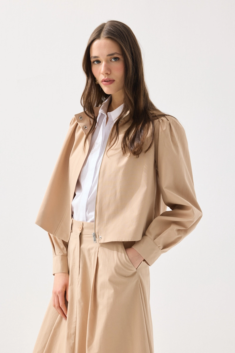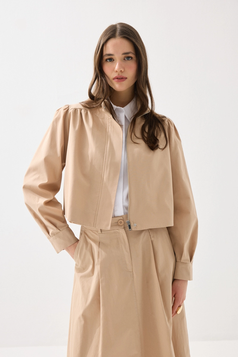 Pamuk kumaşıyla rahat ve nefes alabilen bir kullanım sunan ceket, fermuarlı tasarımıyla modern bir görünüm kazanır. Hafif yapısı sayesinde mevsim geçişlerinde ideal bir parçadır. Bej rengiyle sade ve şık kombinler oluşturabilirsiniz. Günlük stilinizi tamamlayan fonksiyonel bir üründür. Rahatlık ve şıklığı bir arada sunar.
