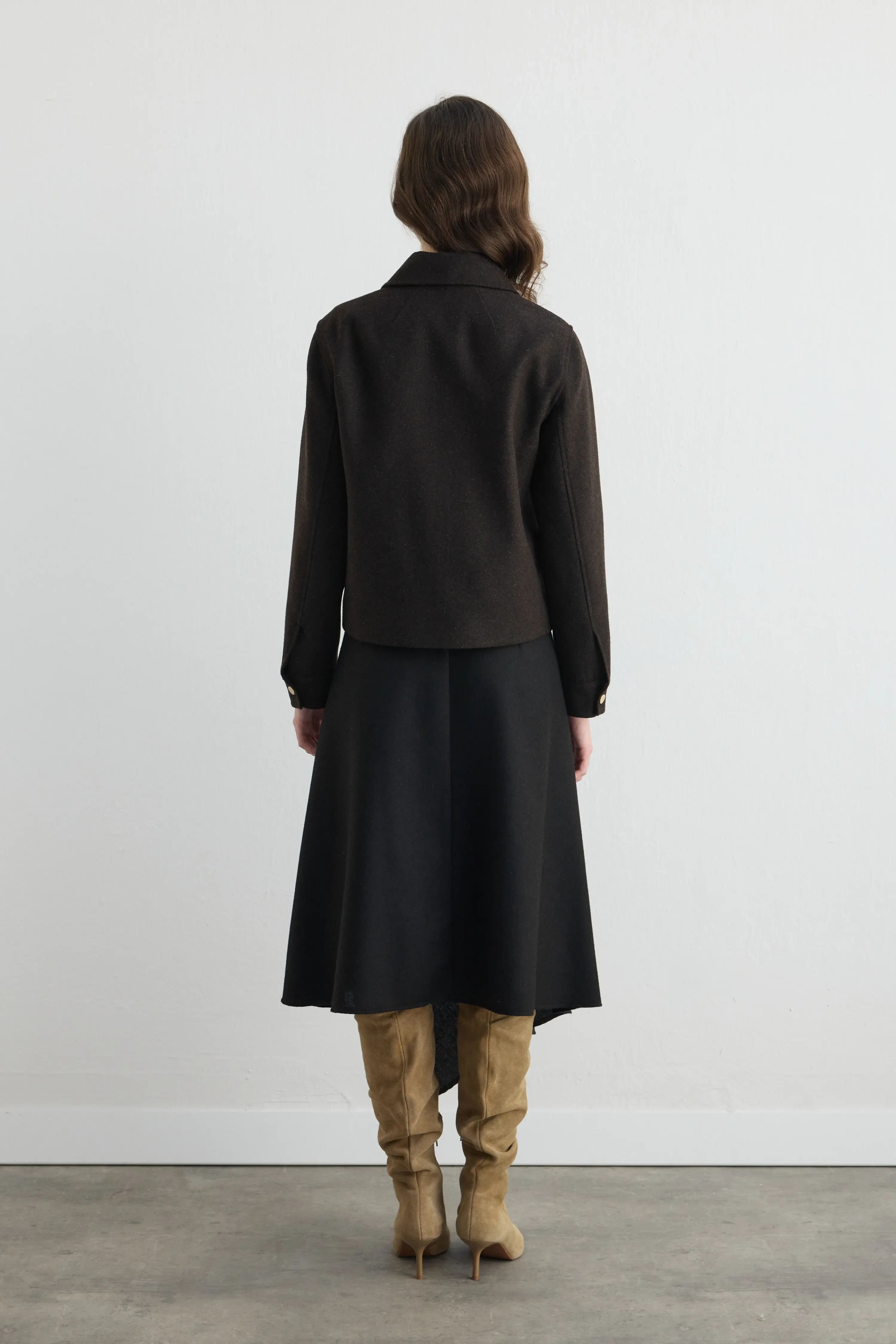 Fermuarlı Yünlü Kaşe Ceket & Anvelop Kesim Asimetrik Yünlü Kaşe Etek - Siyah