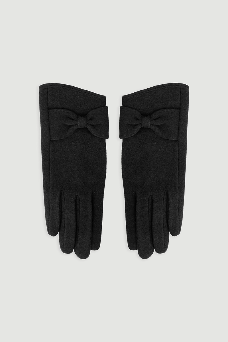 Its black color delivers timeless elegance. The bow detail adds a feminine and refined touch. Its soft texture keeps the hands warm and provides comfort. The minimal design matches any outfit. It is a striking accessory that completes your style for both daily wear and special occasions.