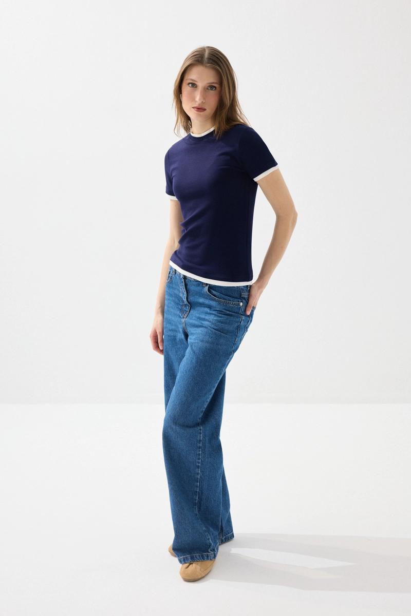 Akıcı viskon kumaşıyla hafif ve konforlu bir kullanım sunan t-shirt, garnili detaylarıyla modern bir görünüm kazanır. Yumuşak dokusu sayesinde gün boyu rahatlık sağlar. Lacivert tonu ile sade ve şık kombinler oluşturmanıza yardımcı olur. Günlük stilinize hareket katan zarif bir parçadır. Rahat kesimiyle her vücut tipine uyum sağlar.