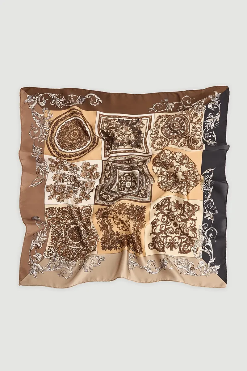 The scarf in neutral mink with geometric patterns offers sophisticated elegance, complementing minimal and modern ensembles. Its soft texture provides all-day comfort, while different tying styles add movement to your look.