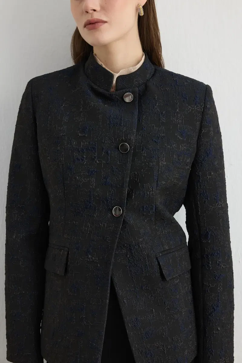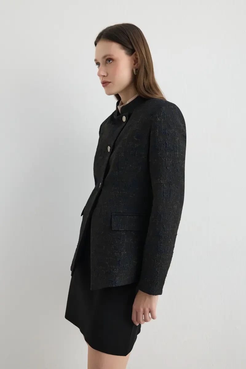 Siyah renk, ciddi ve şık bir duruş sağlıyor. Jakarlı dokusu detaylarda sofistike bir derinlik katıyor. Hakim yaka kesimi modern bir hava yaratıyor. İş veya özel davet kombinlerinde rahatlıkla tercih edilebilir. Minimal aksesuarlarla şıklık pekişiyor. Her ortamda kendine güvenli bir stil sunuyor.