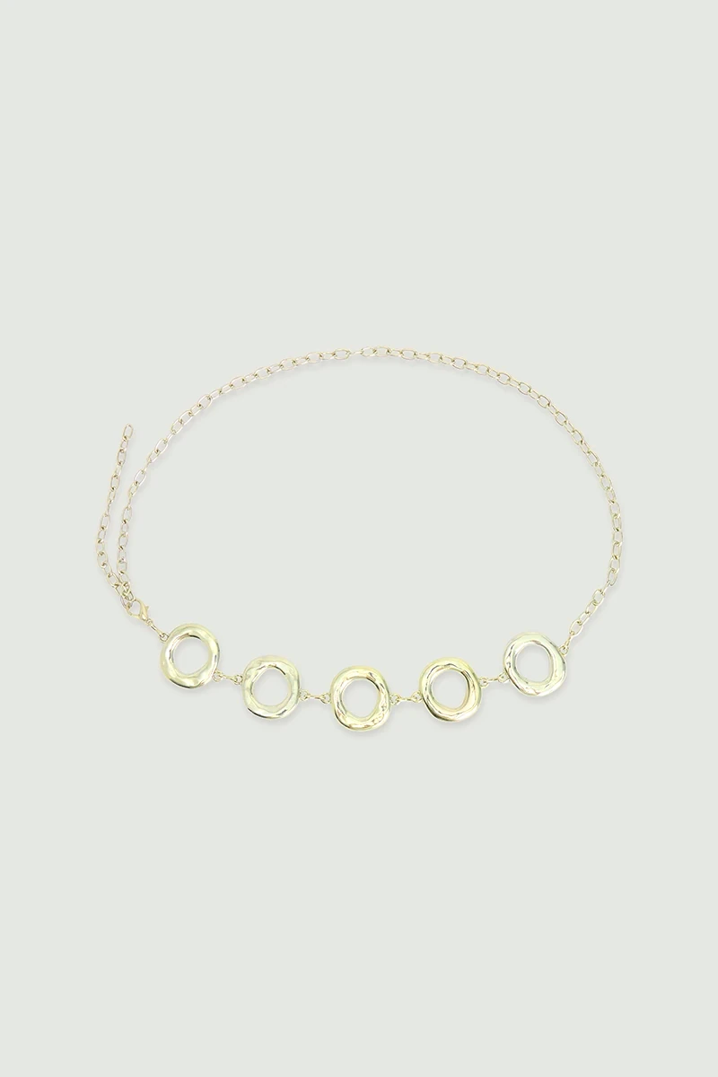 Zarif ve modern bir aksesuar seçeneğidir. Parlak metal halkaları sayesinde hem elbiselerle hem pantolon ve eteklerle şık bir uyum yakalar. Günlük kombinlere ışıltı katarken, gece stillerinde de sofistike bir tamamlayıcı olarak öne çıkar.