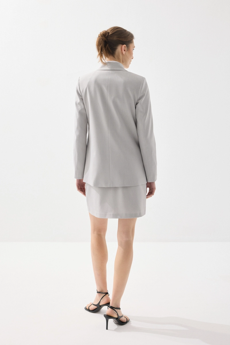 Balıksırtı dokusuyla klasik bir görünüm sunan blazer ceket, iki düğmeli tasarımıyla şık ve modern bir stil yaratır. Vücuda uyum sağlayan kesimiyle zarif bir duruş sergiler. Gri rengiyle ofis ve günlük kombinlerde rahatlıkla tercih edilebilir. Zamansız ve güçlü bir parçadır. Şıklığı tamamlayan bir seçenektir.