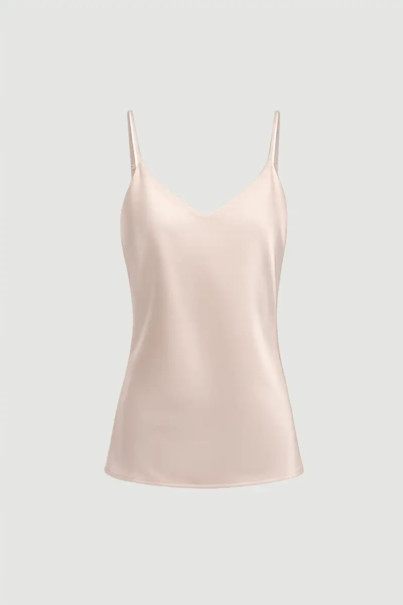 Saten dokusuyla parlak ve zarif bir görünüm sunar. İnce askılı tasarımı feminen bir stil oluşturur. Pudra tonu yumuşak ve romantik bir hava katar. Şık ve günlük kombinlerde rahatlıkla kullanılabilir.