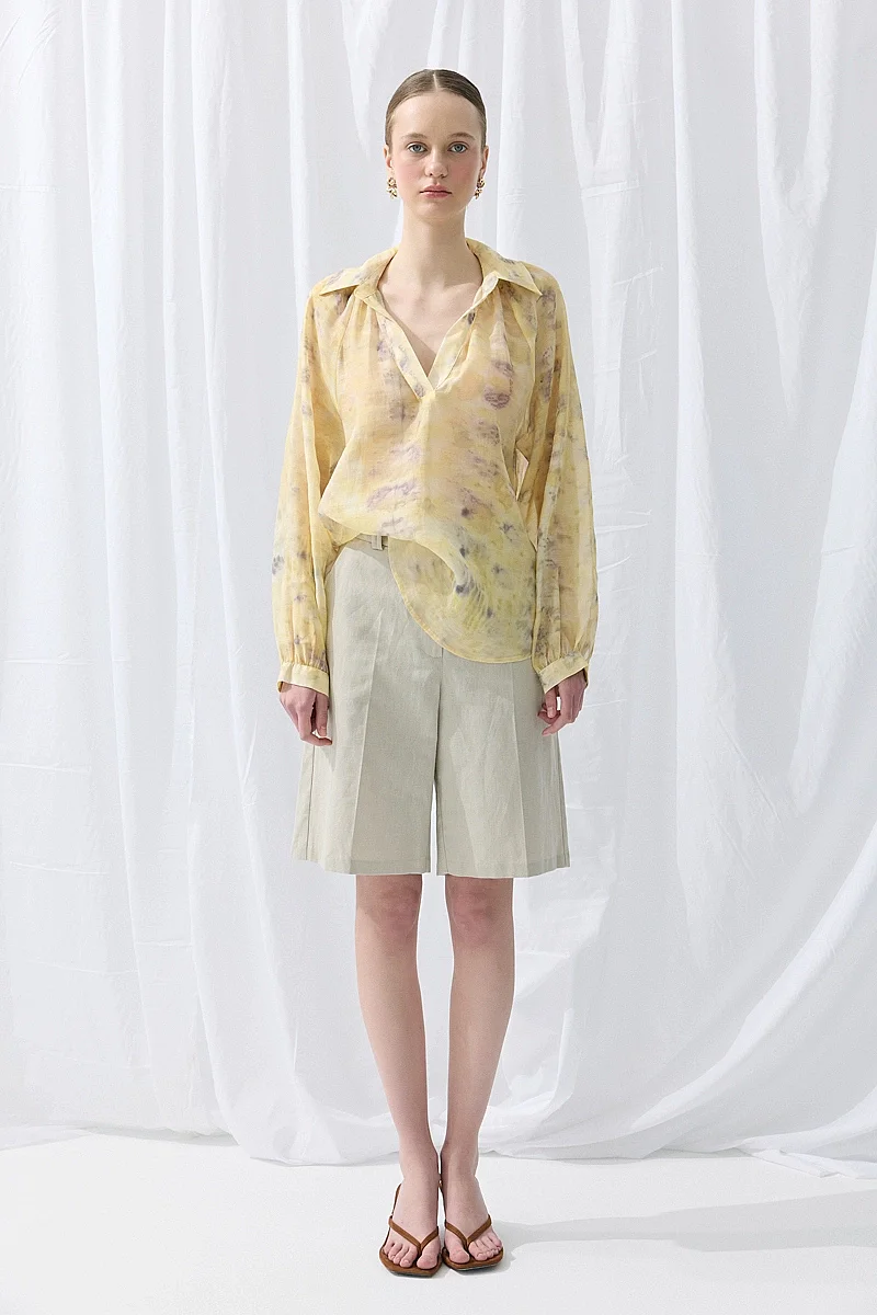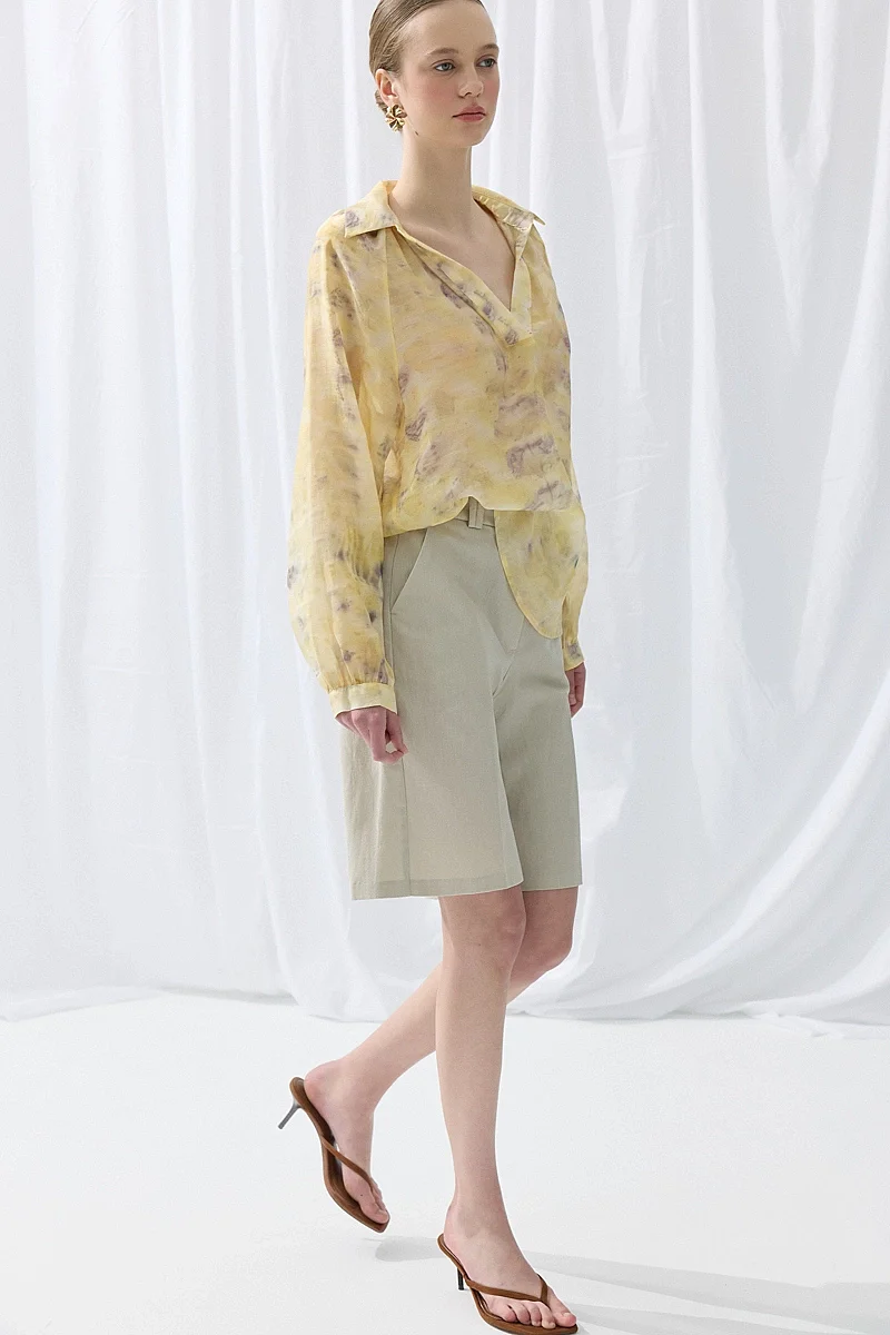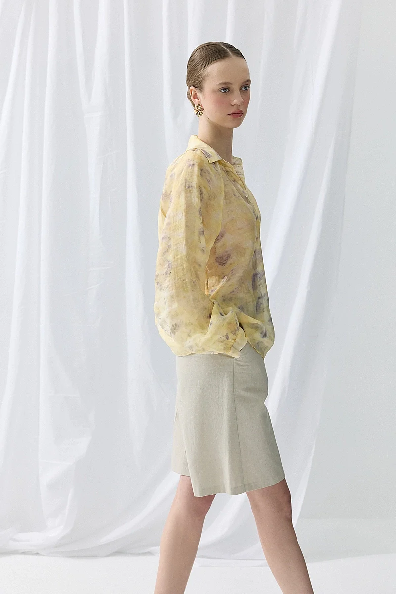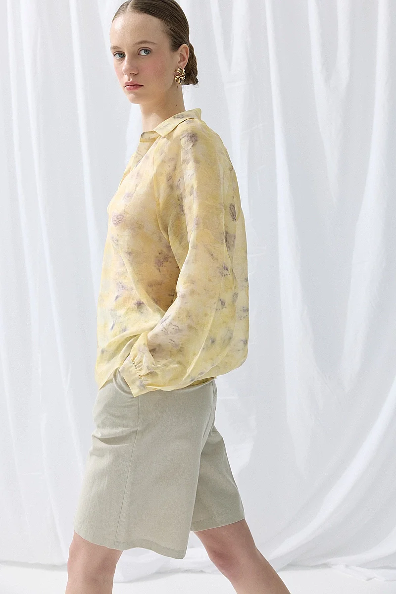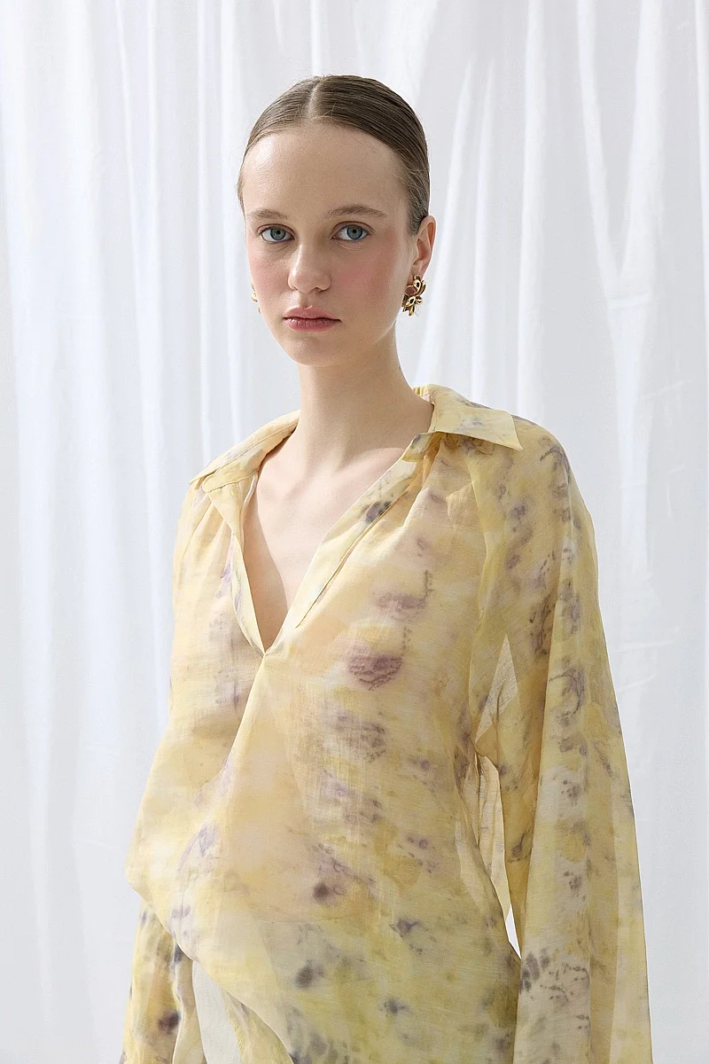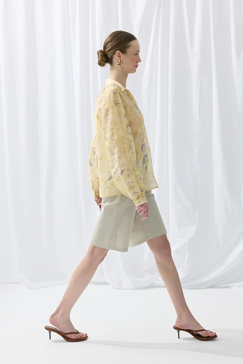 Doğal baskı detaylarıyla özgün bir stil sunar. Tensel dokusu sayesinde yumuşak ve konforlu bir kullanım sağlar. Sarı tonlarıyla enerjik ve dikkat çekici bir görünüm oluşturur. Günlük kombinlere farklı bir karakter kazandırır. Hafif yapısıyla rahat bir kullanım sunar.