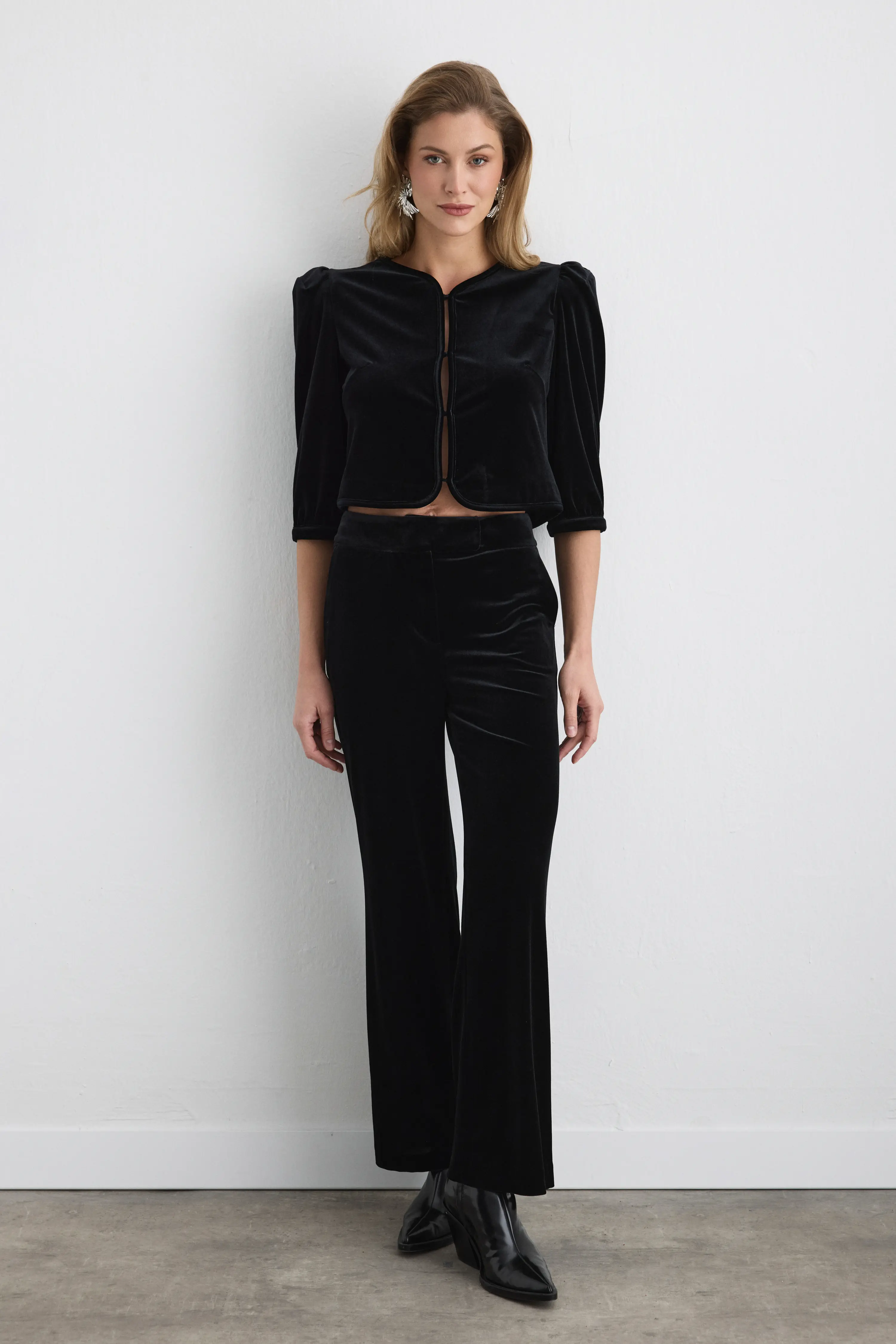 Kısa formu ve parlak yüzeyiyle abiye kombinlere zarif bir tamamlayıcılık katıyor. Kadife dokusu lüks bir his verirken, kesimi vücut hatlarını dengeleyici bir etki yaratıyor. Şık elbiselerin üzerinde etkileyici bir duruş sağlıyor.