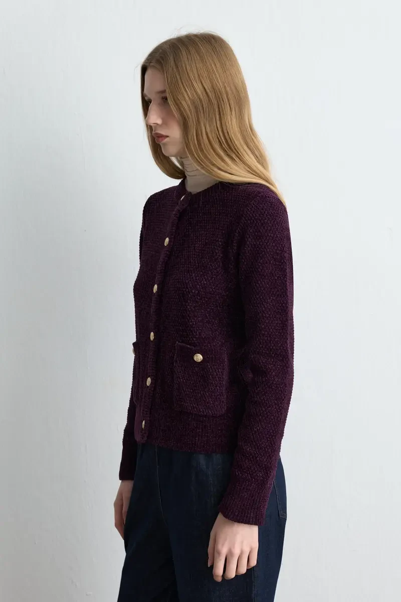 Mürdüm tonu sofistike bir zarafet kazandırır. Kadife dokusu yumuşak bir parlaklık sunar. Triko yapısı hafif ve konforlu bir his oluşturur. Klasik kesimiyle her ortamda kolayca uyum sağlar. Gündüzden geceye zarif bir tamamlayıcı olarak öne çıkar.