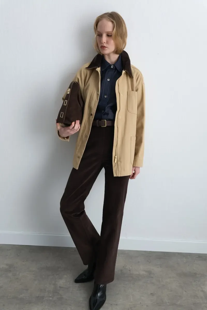 Bej rengi ve kadife yaka detayıyla öne çıkan bu kanvas ceket, rahat kesimi sayesinde gündelik kombinlerde konforlu bir kullanım sunar. Şık duruşu ile kot veya kumaş pantolonlarla modern bir şehir stili yaratır. Katmanlı giyimde ideal bir tamamlayıcıdır.
