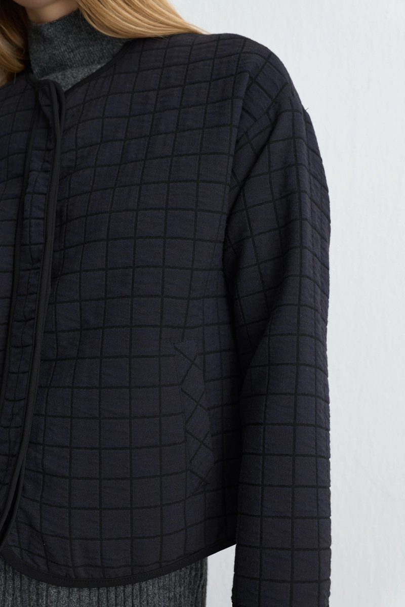 Modern kapitone dokusuyla farklı bir şıklık kazandırır. Lacivert tonu asil bir hava sunarak kombinlere derinlik katar. Hafif yapısı mevsim geçişlerinde ideal bir seçenek oluşturur. Jean pantolonlardan elbiselere kadar pek çok parçayla uyum sağlar.