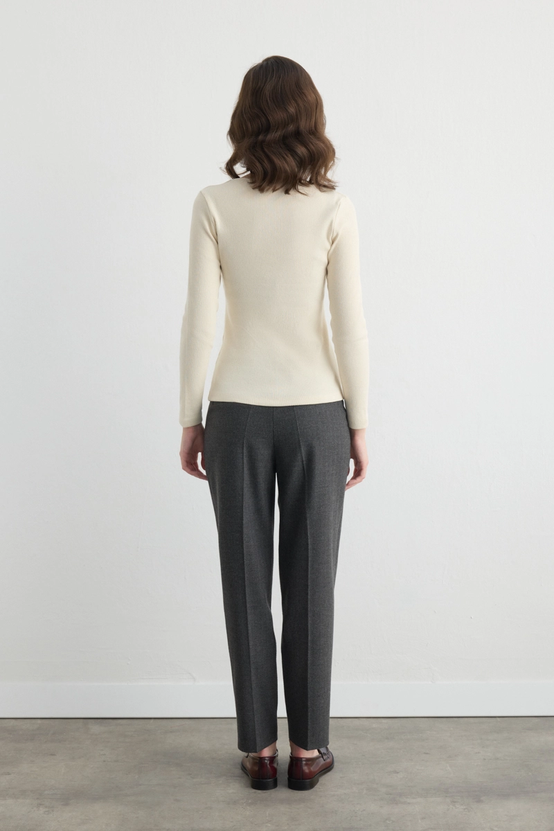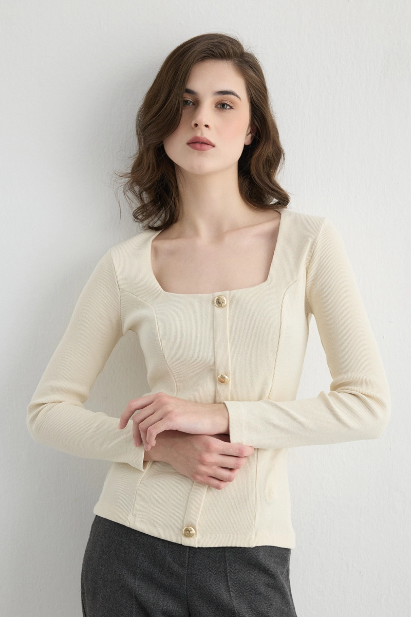 The square neckline design provides a classic and modern look. Cotton fabric ensures breathability and comfort. Ecru tones coordinate with any outfit. Suitable for daily and office chic styling. Minimal details create a simple and elegant appearance. Easily combined with various bottoms.